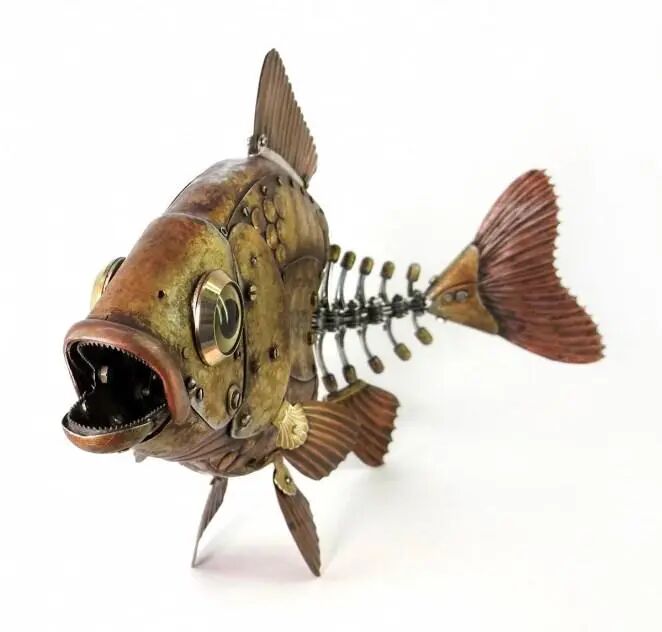 蒸汽朋克的起源,最早可以追溯到19世纪末,各种形式的蒸汽朋克作品,极大激发了人们的想象力,以及艺术家们的创造力,今天小绛要介绍给大家的这一位艺术家,就用很多的废弃物品,创作了一系列蒸汽朋克雕塑,它们看上去是我们非常熟悉的动物,但又比实物“硬核”得多。