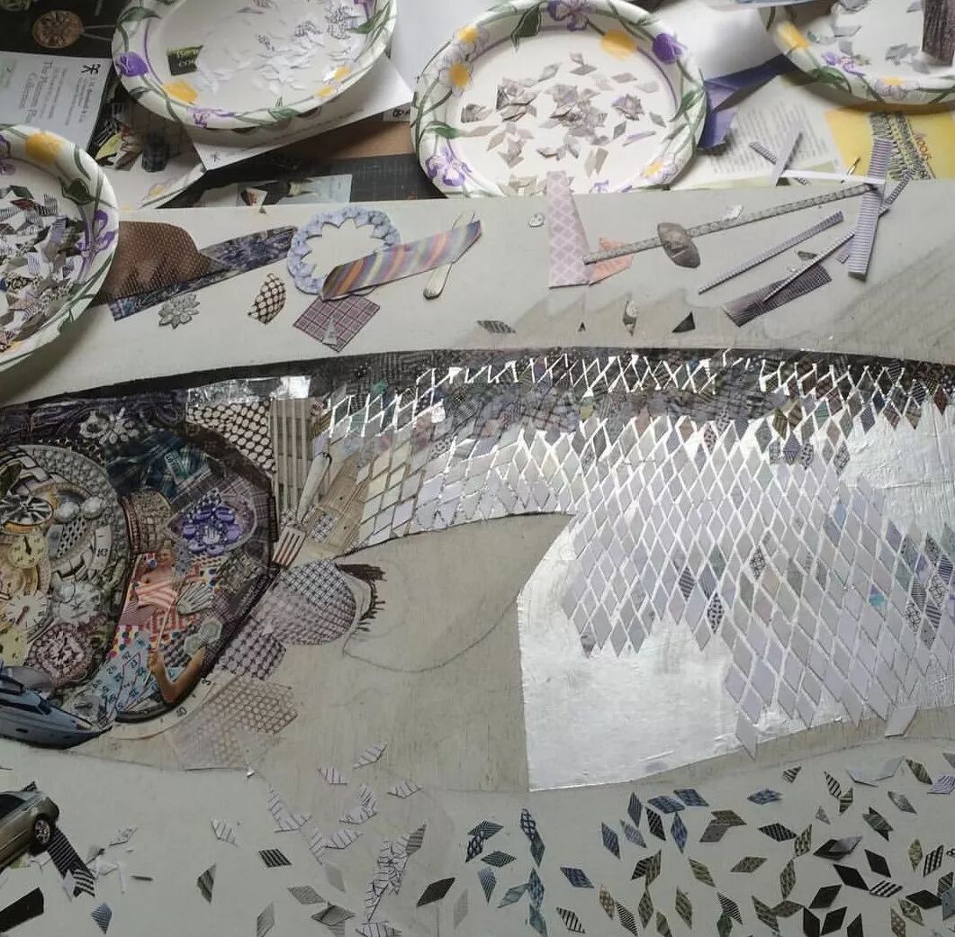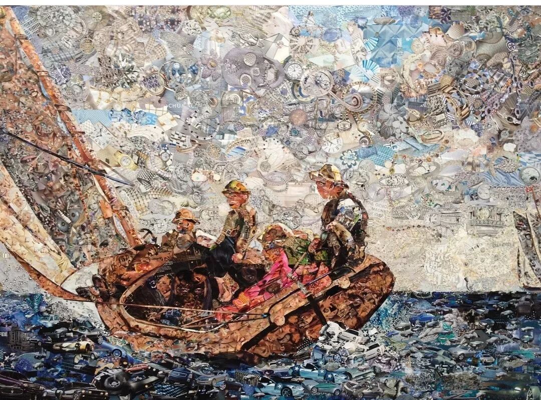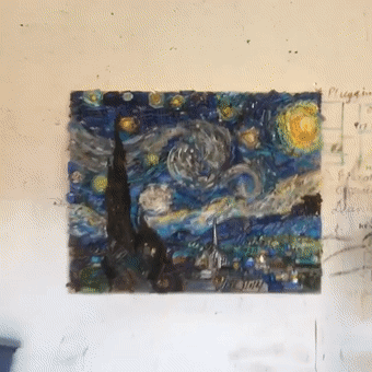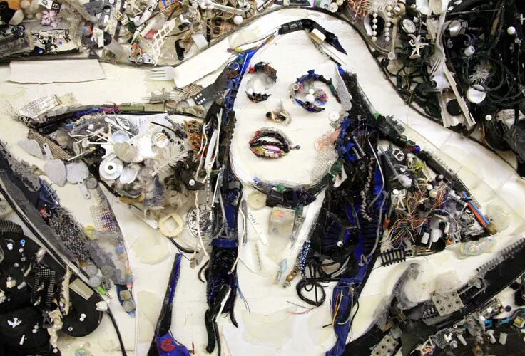 用收集而来的垃圾组装成“名画”。