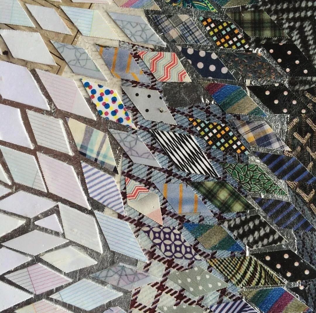 Tom将碎布剪成一个个菱形。