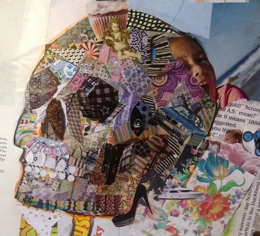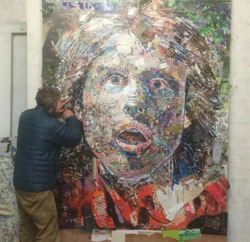 Tom将杂志拼贴与垃圾拼贴结合,