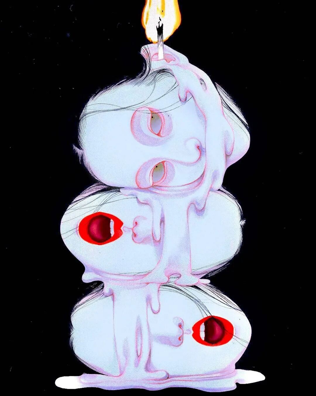 长长的舌头那绵软的质感,手指皮被一丝丝撕开的痛楚,婴儿布丁嫩滑的脸庞,和服女子打火机点火的声音……仿佛我既是画家邪恶的同谋,又是被绑架的受害者。