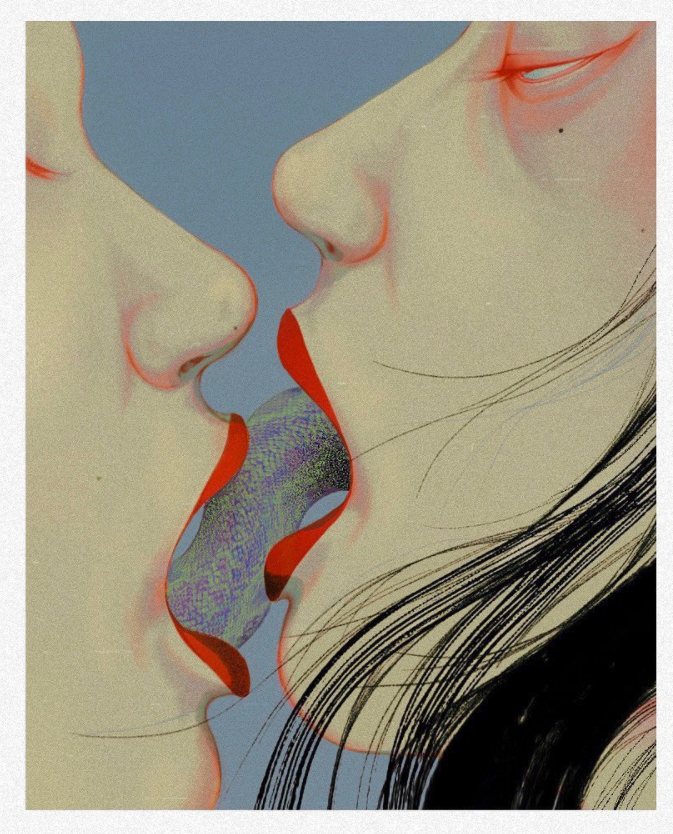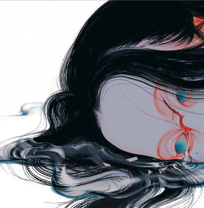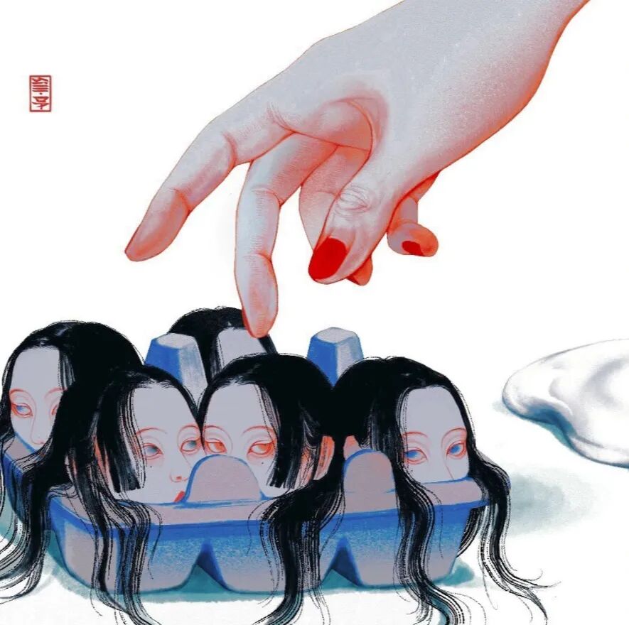 脸庞和手,是经常出现在SilllDA的画中的元素,既是人物情绪表达的载体,也体现了一种连结。人物的面容总是冷漠,眼神充满警戒,手却在黑暗中寻找同类,哪怕指尖同样的冰冷。