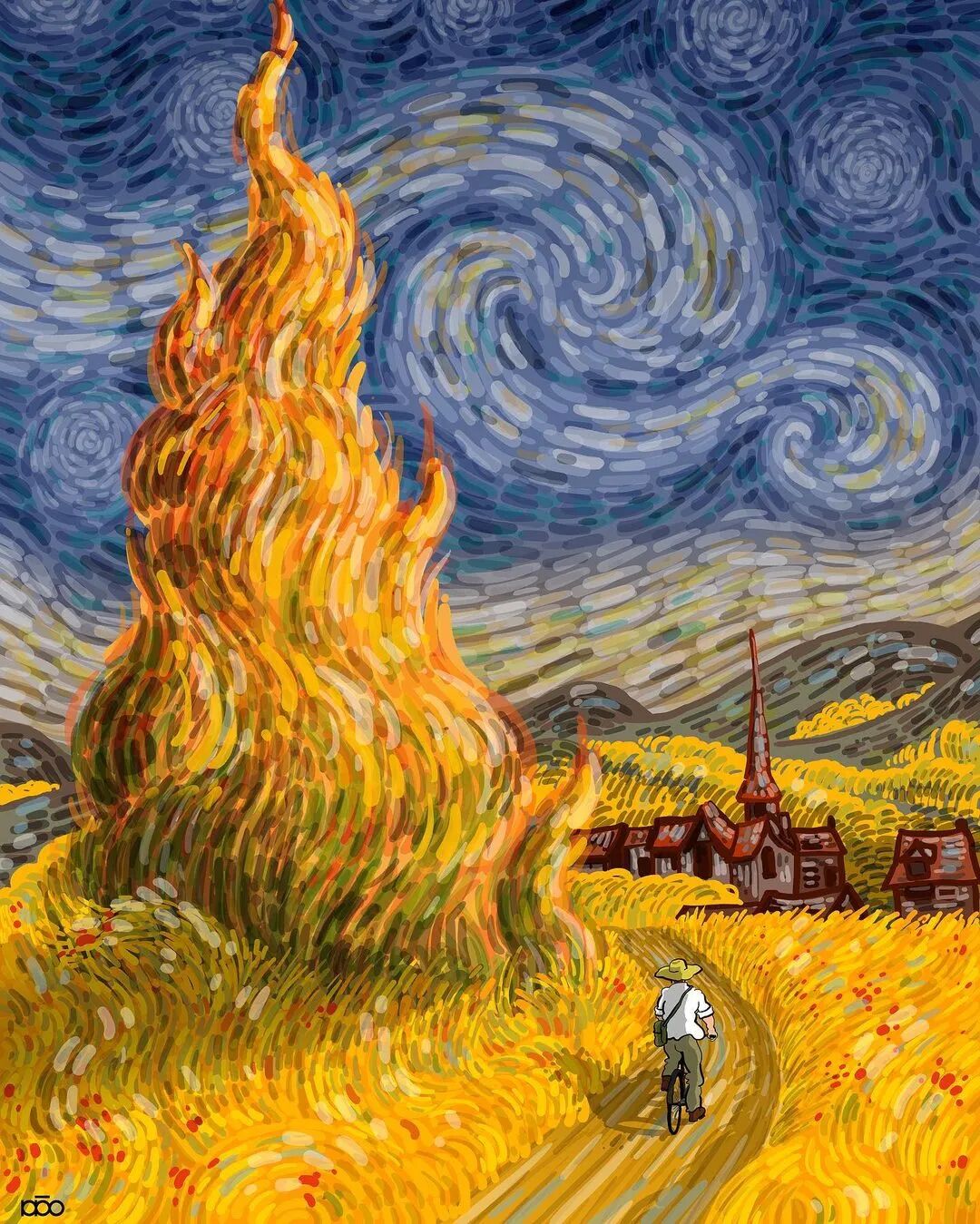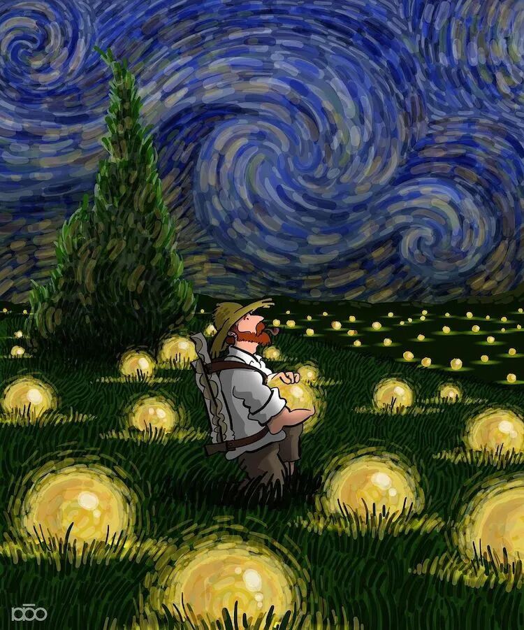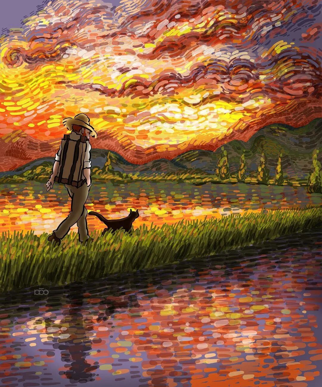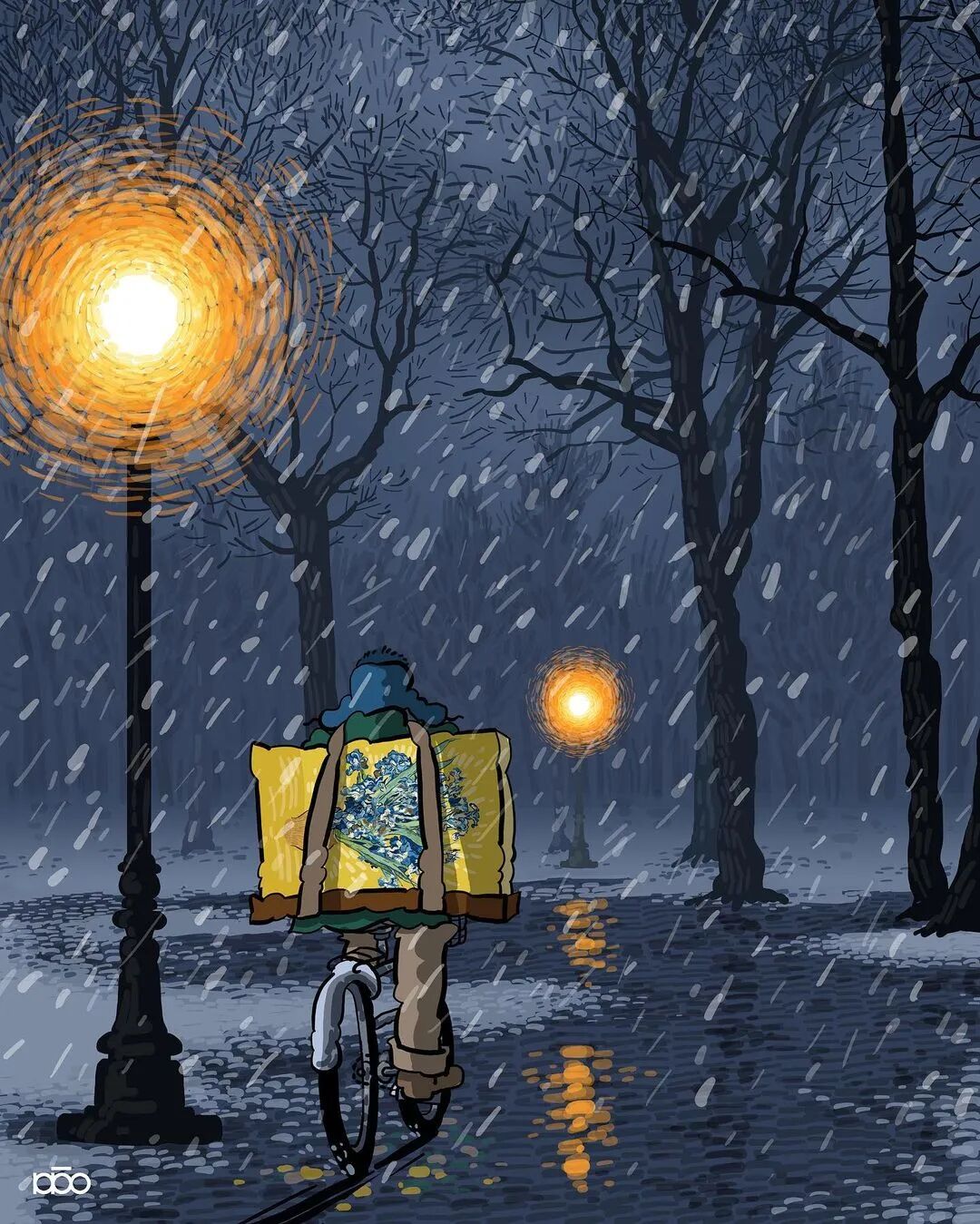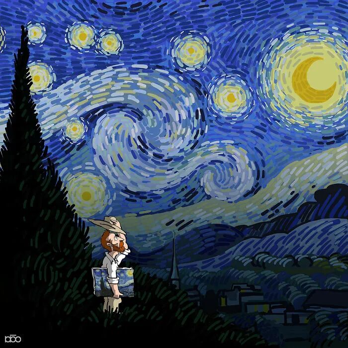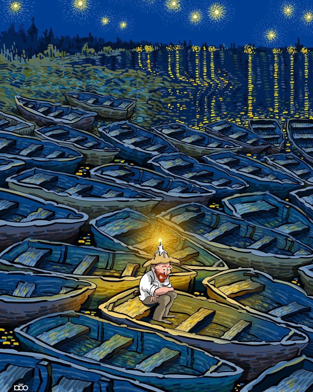 伊朗漫画家和插画家Alireza Karimi Moghaddam,在阿扎德大学获得了平面艺术硕士学位,目前住在里斯本。在他十几岁的时候,爱上了梵高及其生平事迹和经典画作。梵高的风格、鲜艳的色彩和生活方式启发了Alireza。