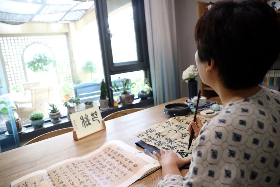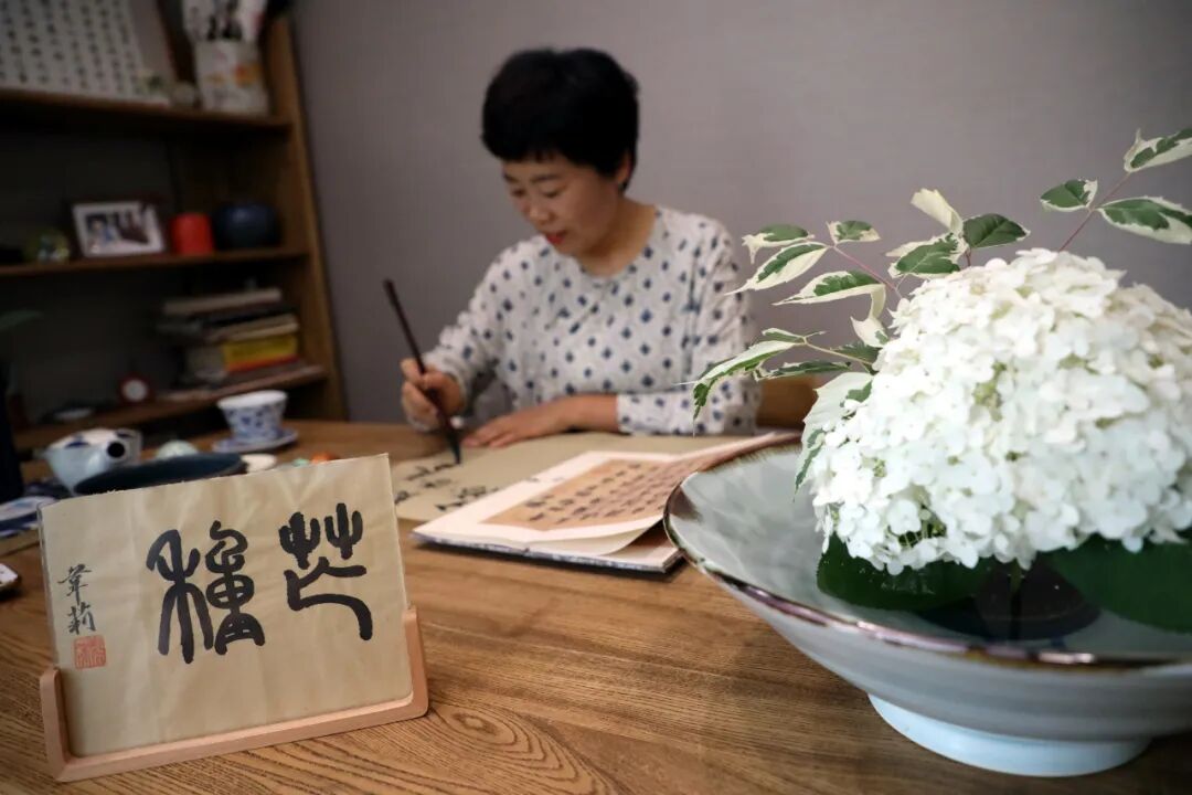 雨后初晴的清晨,孔雀城的韦莉女士在书房里练习着毛笔字。书桌上摆放着她写的篆书“芒种”,花瓶里插着新采的绣球和花叶槭,房间里飘着淡淡的清香。夏至一到,花瓶里又该换上新花样了。