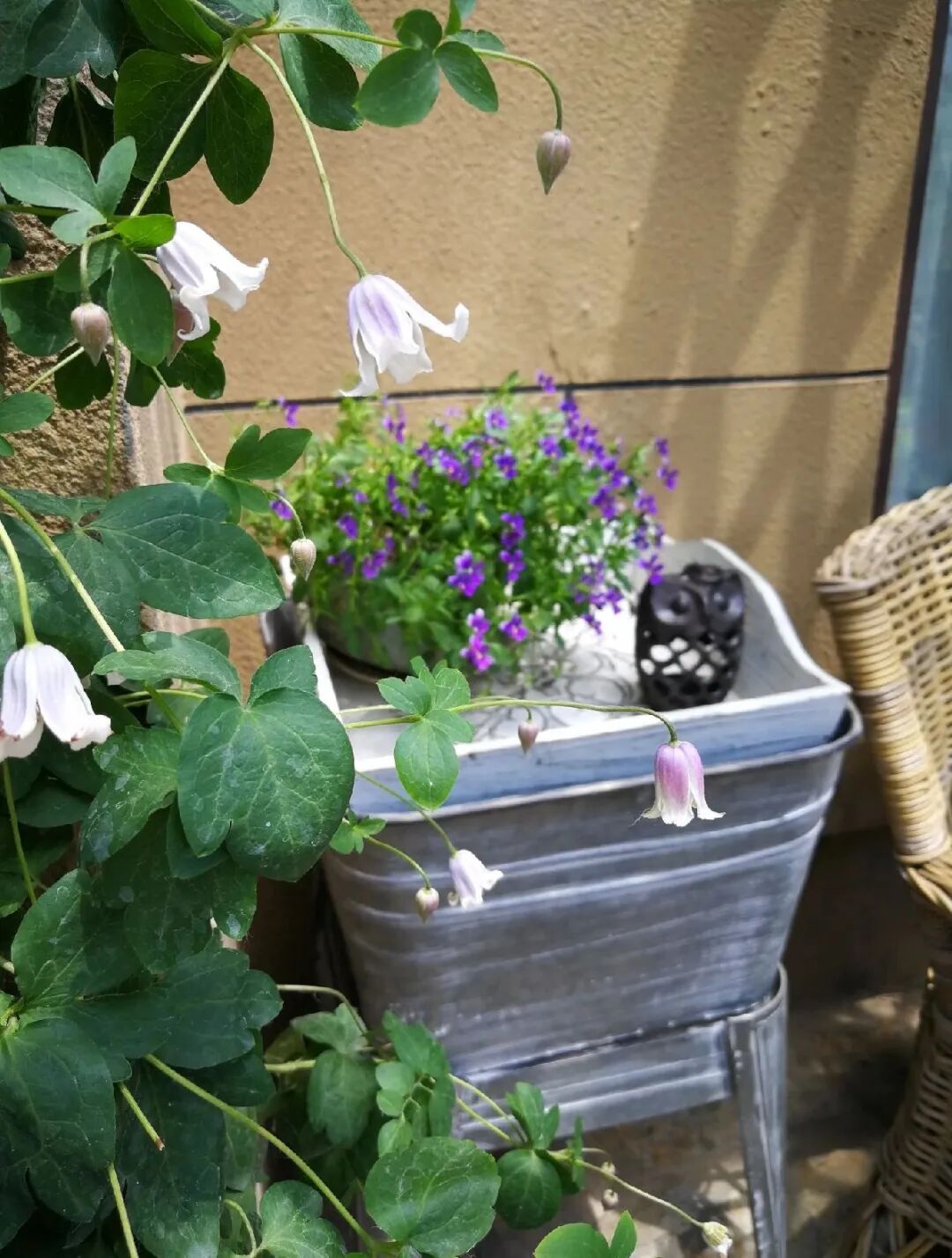 初夏时分,很多人家的花园变成了草园,但韦莉家仍然盛开着不少花儿。门外的日本月季和德国月季迎来了“第二春”,虽然比四五月份的花朵小了一圈,但姿色不减。栅栏上玫红色的铁线莲——戴安娜最是娇艳,每天都会长出新的花苞。鼠尾草长得高高壮壮,热情地捧出一串串蓝色的小花儿。可爱的荷兰风铃草已经开了三个月了,羞怯迷人。