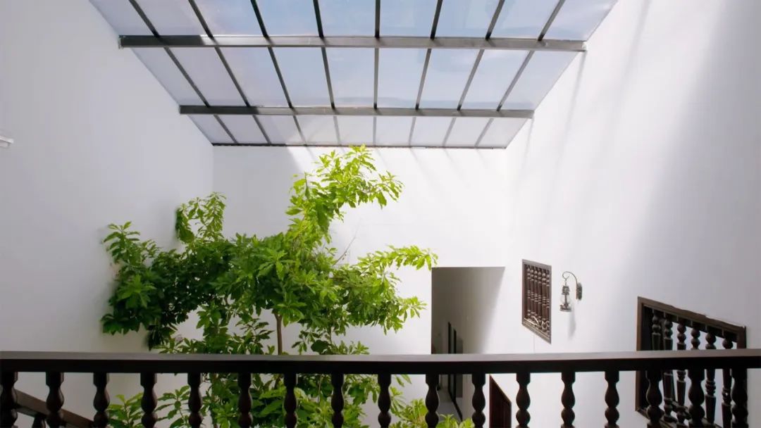 这个庭院格局也是借鉴了传统院落,但不同的是,我们设计成带玻璃屋顶的封闭式庭院,更适应现代的生活方式。