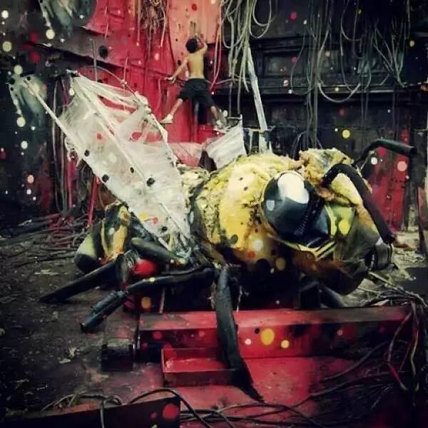 废旧电线,白色塑料袋,黑色橡胶,组成了一只大黄蜂!