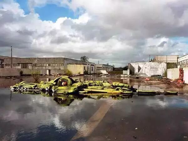 比如这废旧轮胎做成了鳄鱼的眼睛,篮球是它的眼珠,将这些放在水池中,再涂上绿色的油漆,看上去就像是真的鳄鱼一般。
