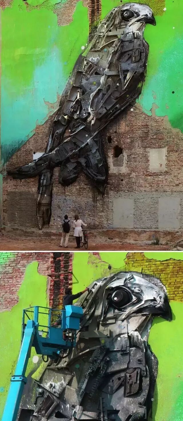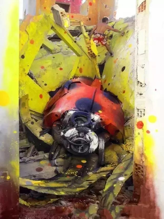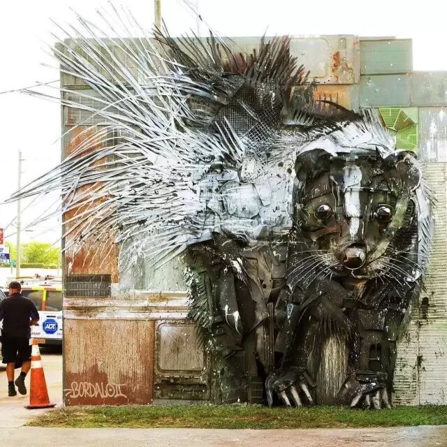 但在他的手中,却能将这些垃圾变废为宝,成为一幅幅惊人的街头涂鸦艺术品!