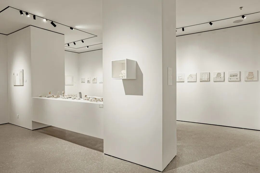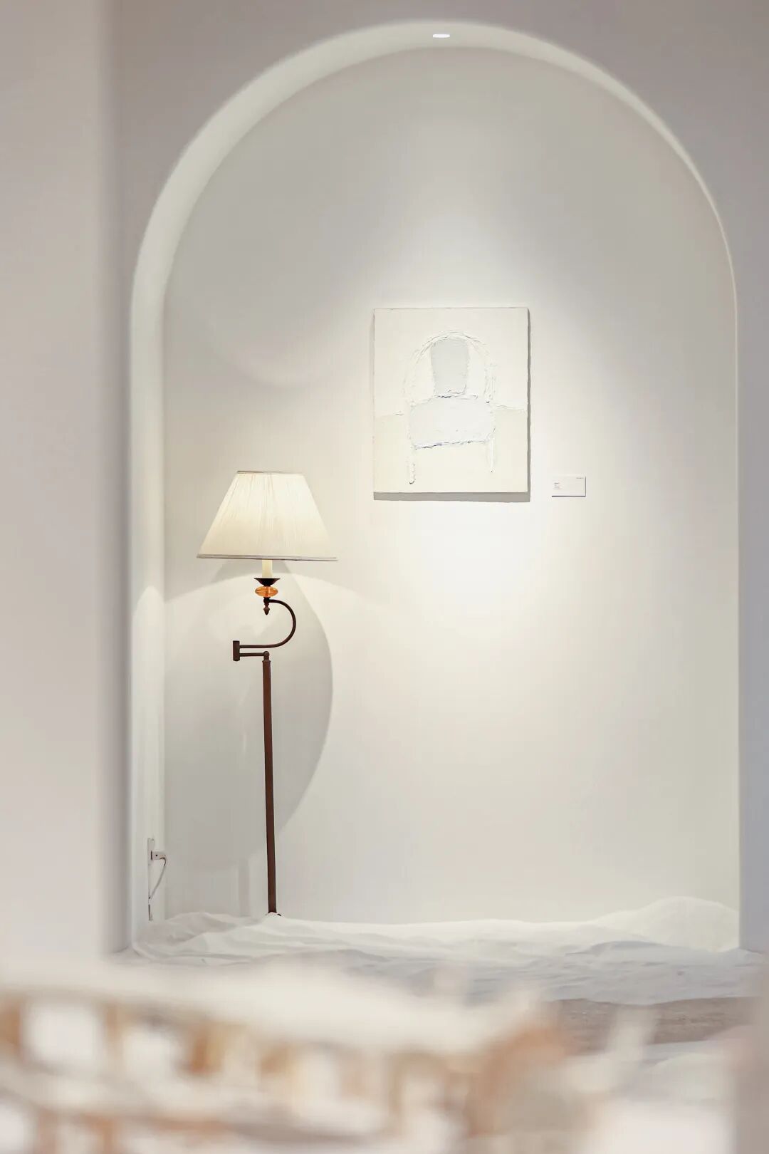HA Gallery“空椅子”展览现场。第一空间打造出一个宛如冬日般的纯粹房间,选择了艺术家以“窗”、“楼梯”等作为主题的作品,预示着某种空间的开启。