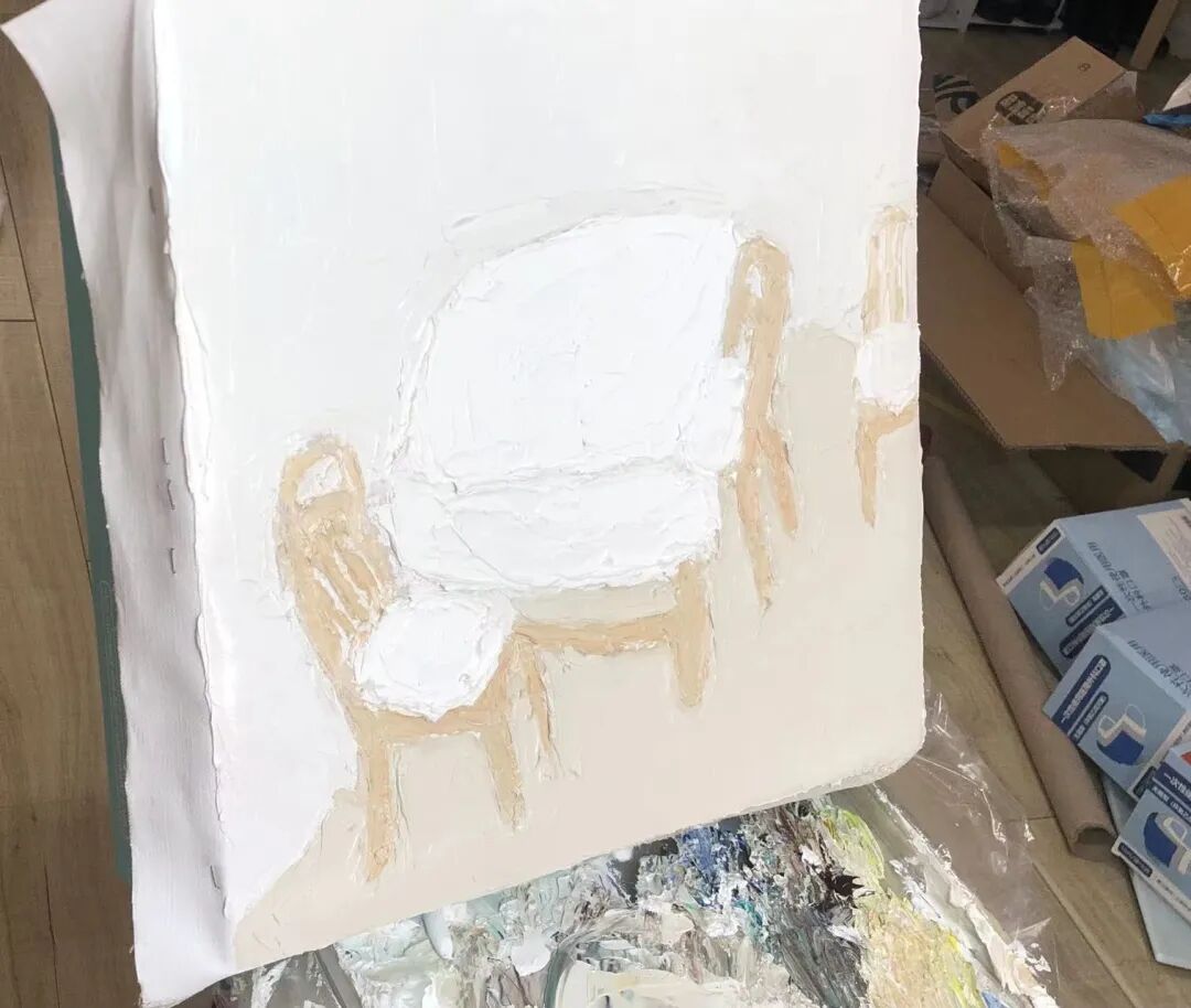 目前,冯玮个展“空椅子”正在Harmony Art Gallery(以下简称HA Gallery)进行(点击链接回顾开幕现场👉HA艺术季官宣开启,来艺术社区共度新年!)。在本次展览中,HA Gallery依据冯玮画作中的不同物件,循着空间由外向内逐渐展开,艺术家标志性的、堆叠的低饱和度矿物质颜料形成物体模糊的边缘。这些被描绘的对象成为了一个个不确定的漂浮物,在无法定义的空间中彼此交织、融化。艺术家试图通过超越这些日常物体本身所具有的平淡与枯燥,为世界注入难得的诗意。