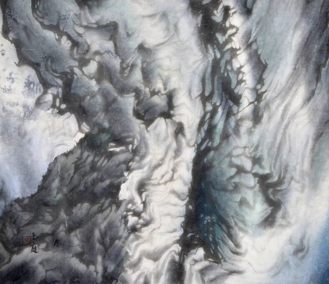 《新觀系列-「金生麗水之一]》,94 x 133 cm,數碼水墨設色紙本,2020
