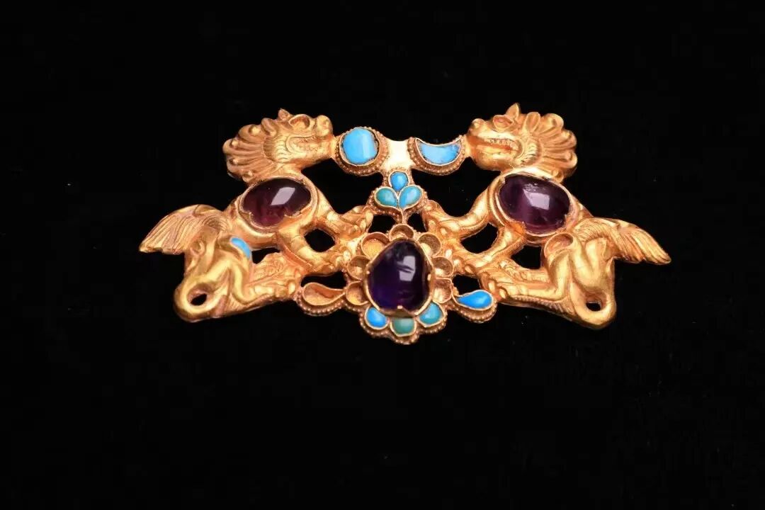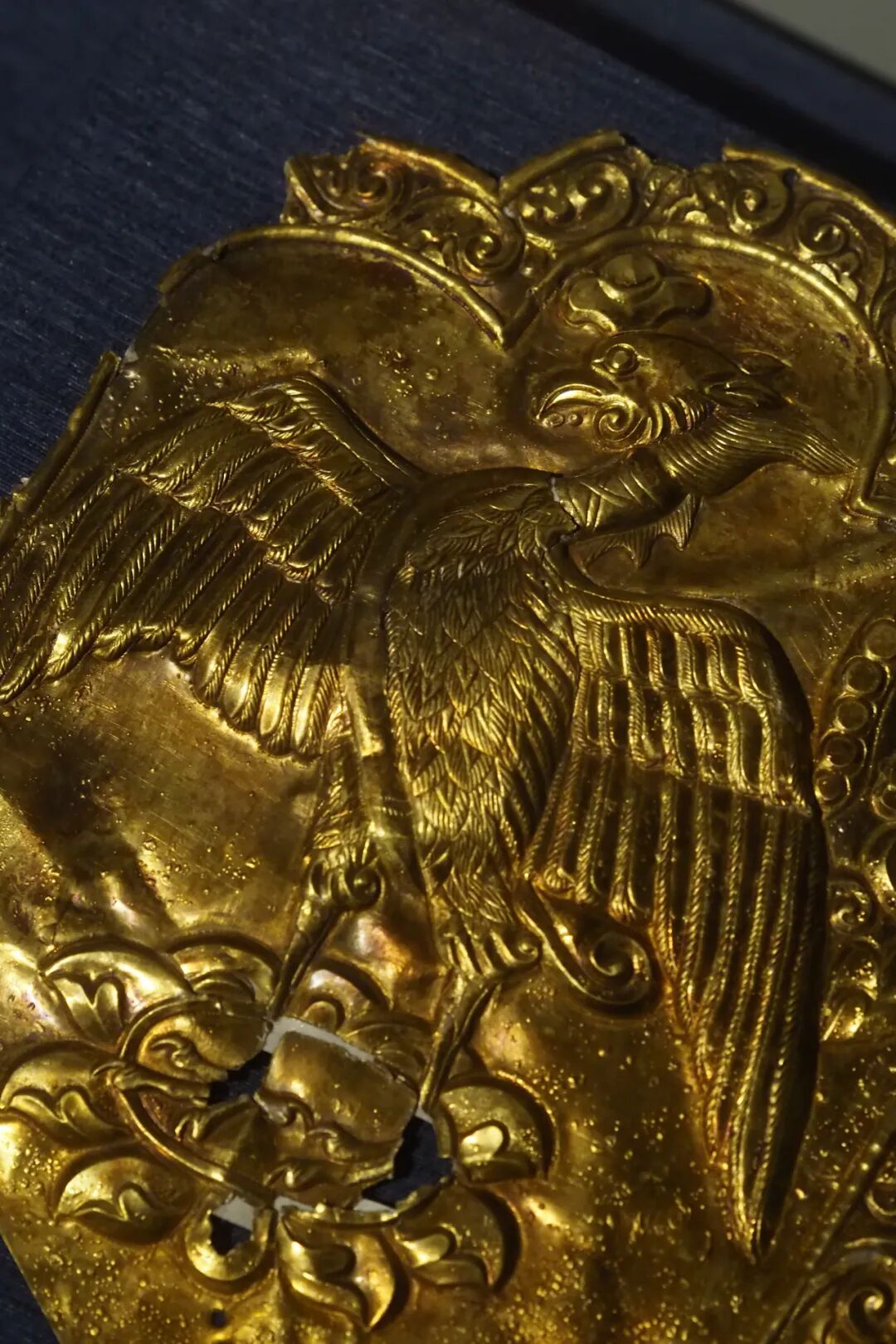 吐蕃 · 鎏金花瓣团窠立鸟银饰片