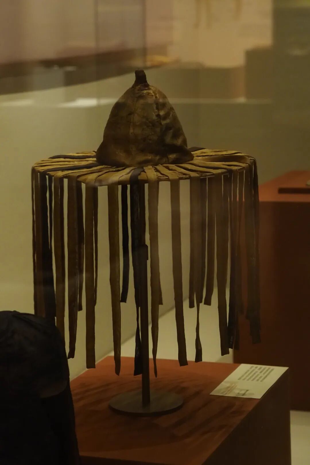 唐代 · 团窠联珠花树对鹿纹锦帽