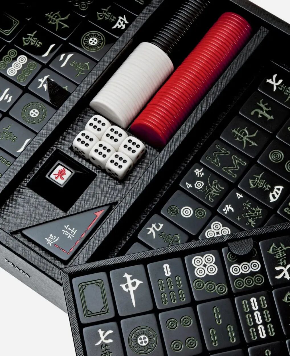 除此之外,麻将作为古老的中国传统文化,至今依旧是不可或缺的娱乐活动之一,自然不会被国际大牌给落下。国外推出个性麻将早已不是新鲜事,然而Prada这一款麻将,虽然官方称“以黑色基底搭配金色字体,就足以让你感受到极致的奢华。”然而大部分中国人看到这副麻将的第一感受却是来自阴间。