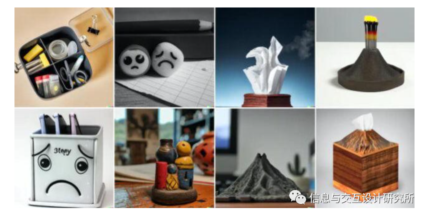 比如提示 DALL-E 使用怀旧的桌面对象。结果令人出乎意料。收到了看起来很悲伤的物体的图像,比如橡皮擦和皱着眉头的纸巾盒。它从字面上理解了提示。接着变得更具体,在提示中插入“Antigua”。结果开始包括该镇的标志性符号——环绕它的火山、鹅卵石街道、殖民时期的建筑。