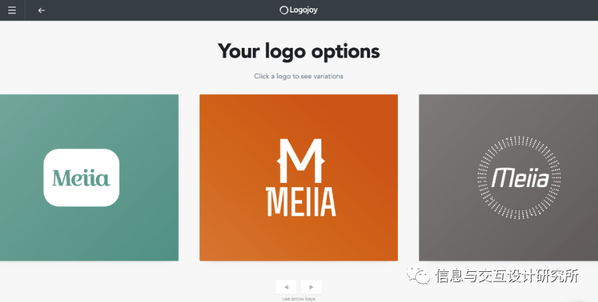 通过智能算法来完成 Logo 的制作,制作流程:选择你喜欢的样式(多选多)——选择你喜欢的颜色——选择你喜欢的图形——生成 Logo。