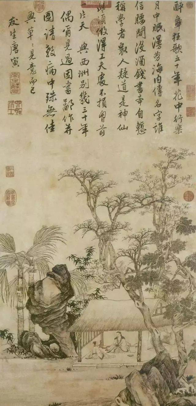 唐伯虎一生过着放荡不羁的生活,常用“江南第一风流才子”印题跋,游山玩水谈恋爱,缺了钱财便卖画。