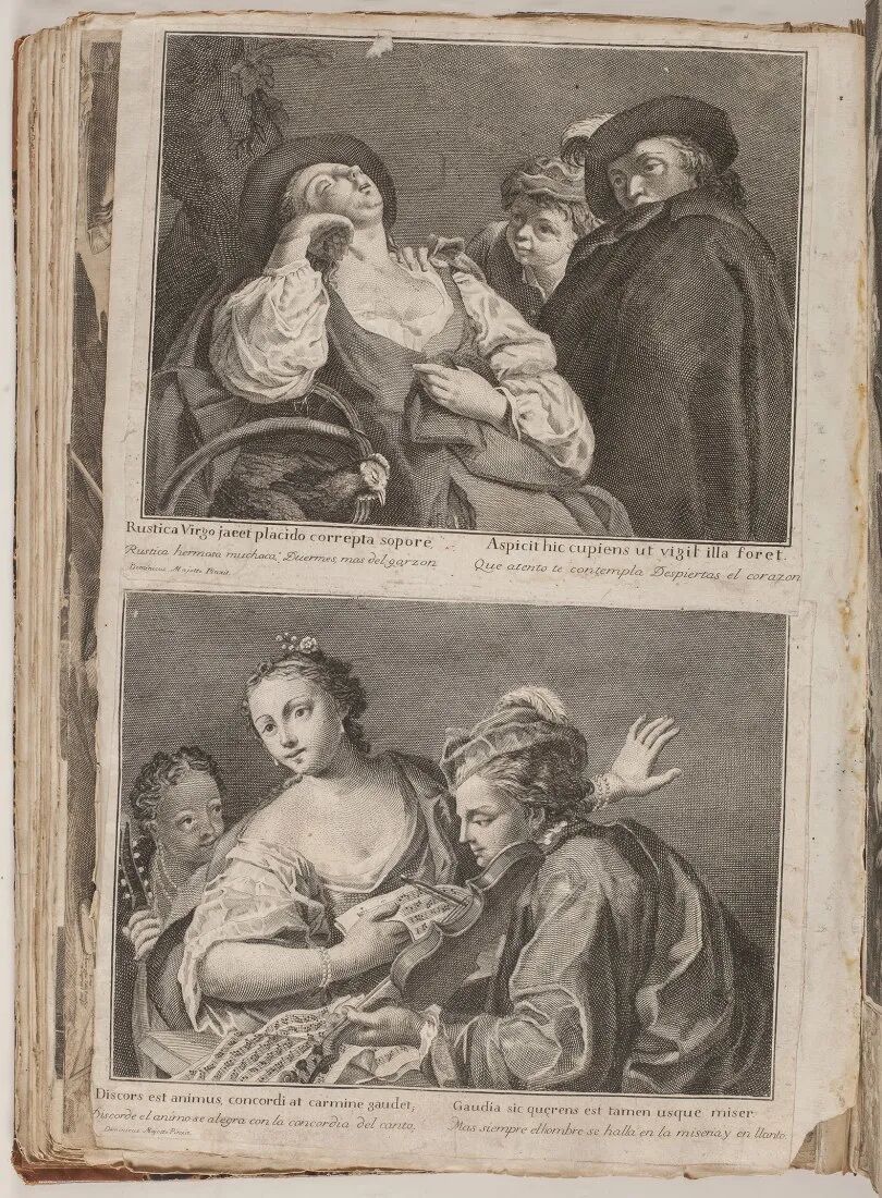 这个项目的提出不仅仅是一种教学意图,一种避免印刷品材料损失的保护意图。多样性是这张专辑的主要品质,有大量的意大利、佛兰芒语、德语、法语版画和少量的西班牙语。其中有著名的作家,如 Pietro Testa、Antonio Tempesta、Jan Sadeler、Jacques Belange 和 Manuel Salvador Carmona,等等。