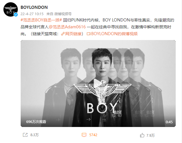 近年来,BOY LONDON还是做了一些创新和尝试,据时代财经报道,2019年,它曾和日本银饰潮牌联名推出全球限量款,又与人气游戏《DNF》进行跨界联名;2020年,BOY LONDON邀请李斯丹妮成为品牌挚友,今年4月还官宣了范丞丞成为其品牌全球代言人。