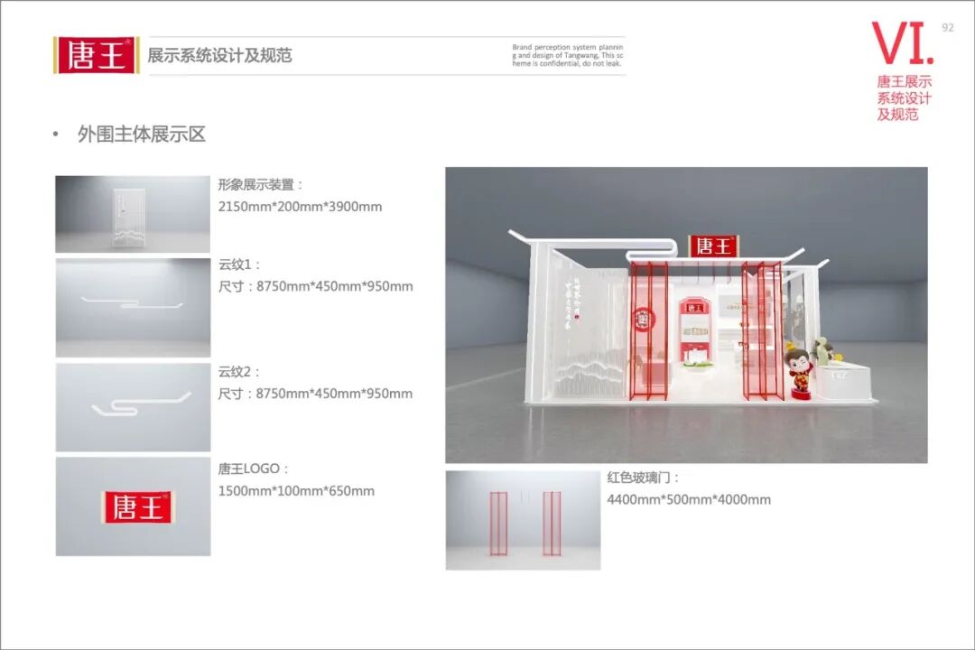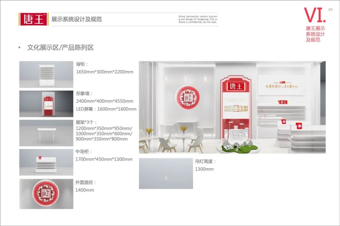 不仅是展位整体布局的效果图展示,在建立完善的规范中,整体的空间布局及各个部分的道具说明,在系统中都进行了详细的尺寸、材质及施工建议说明,有利于从设计到落地的完美展现。
