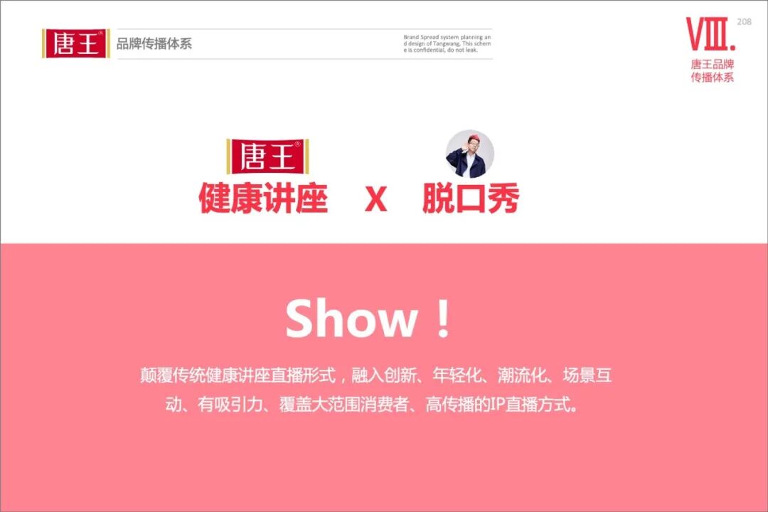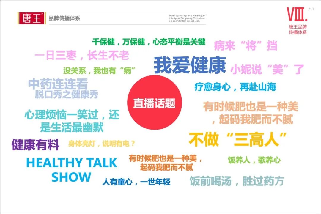 唐王应打造出围绕“健康讲座3.0”的主题王牌IP活动。IP栏目名称为“一起健康,一起 SHOW”,用微博话题、行业栏目、科普讲座、KOL、新媒体账号IP、视频号直播、私域流量等方式进行全面营销的带动。