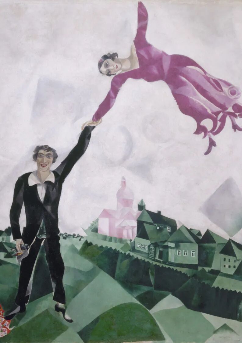 自1920年代开始,一直到夏加尔艺术生涯的晚期,一对柔情相拥的恋人开始频频出现在他的画笔之下,“爱情”几乎可以称得上是夏加尔用尽毕生所创作的主题,更成为其作品的标志性元素。