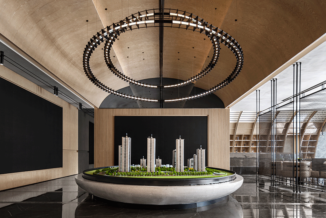 会所地上一层的城市会客厅,是未来业主的归家大堂。在空间中置入采光天井,调节室内环境,透过光影记录时间,珍视自然环境。