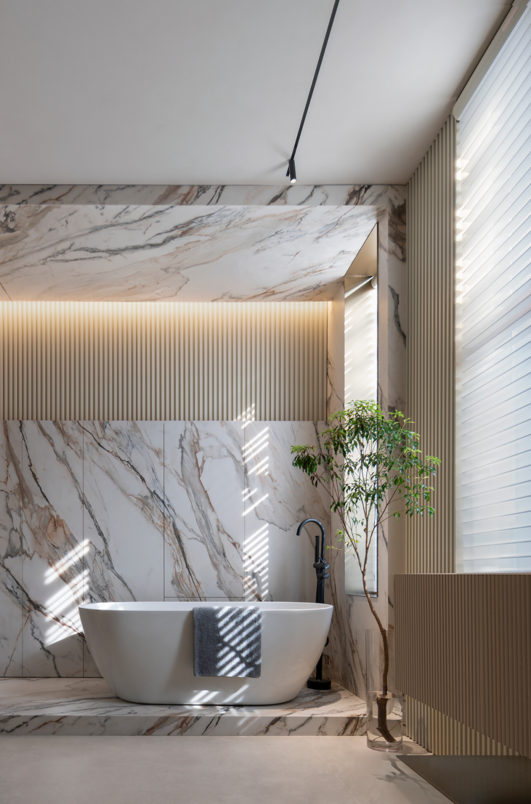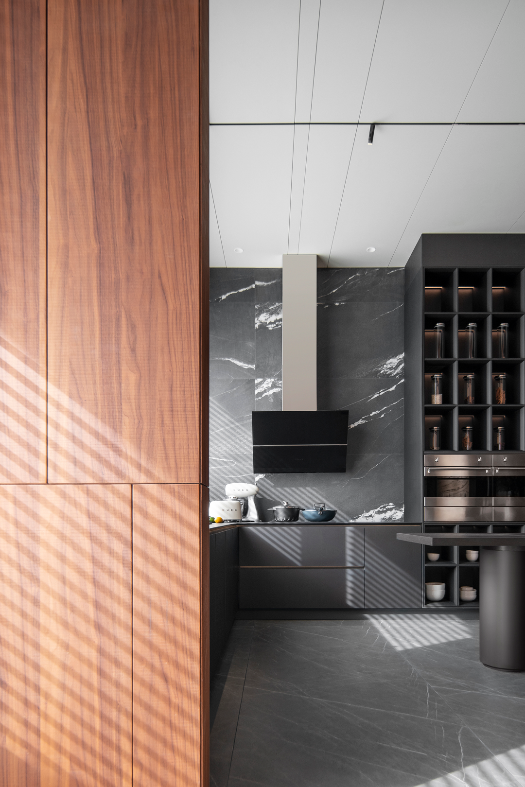 质感、材料、光线的调节、色彩等所有要素汇集一起形成了空间的优雅品质与精神—— 内敛静谧的诗意空间。