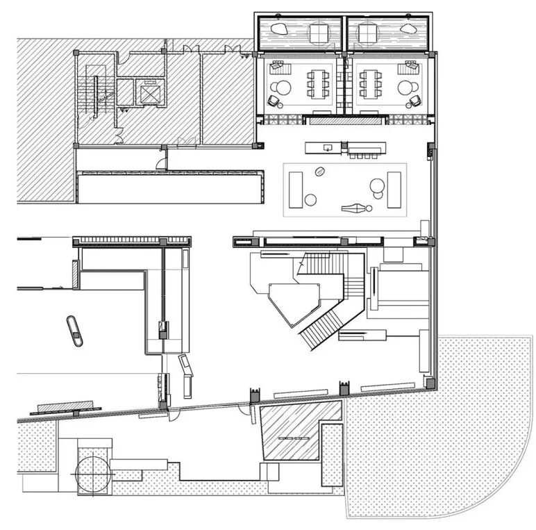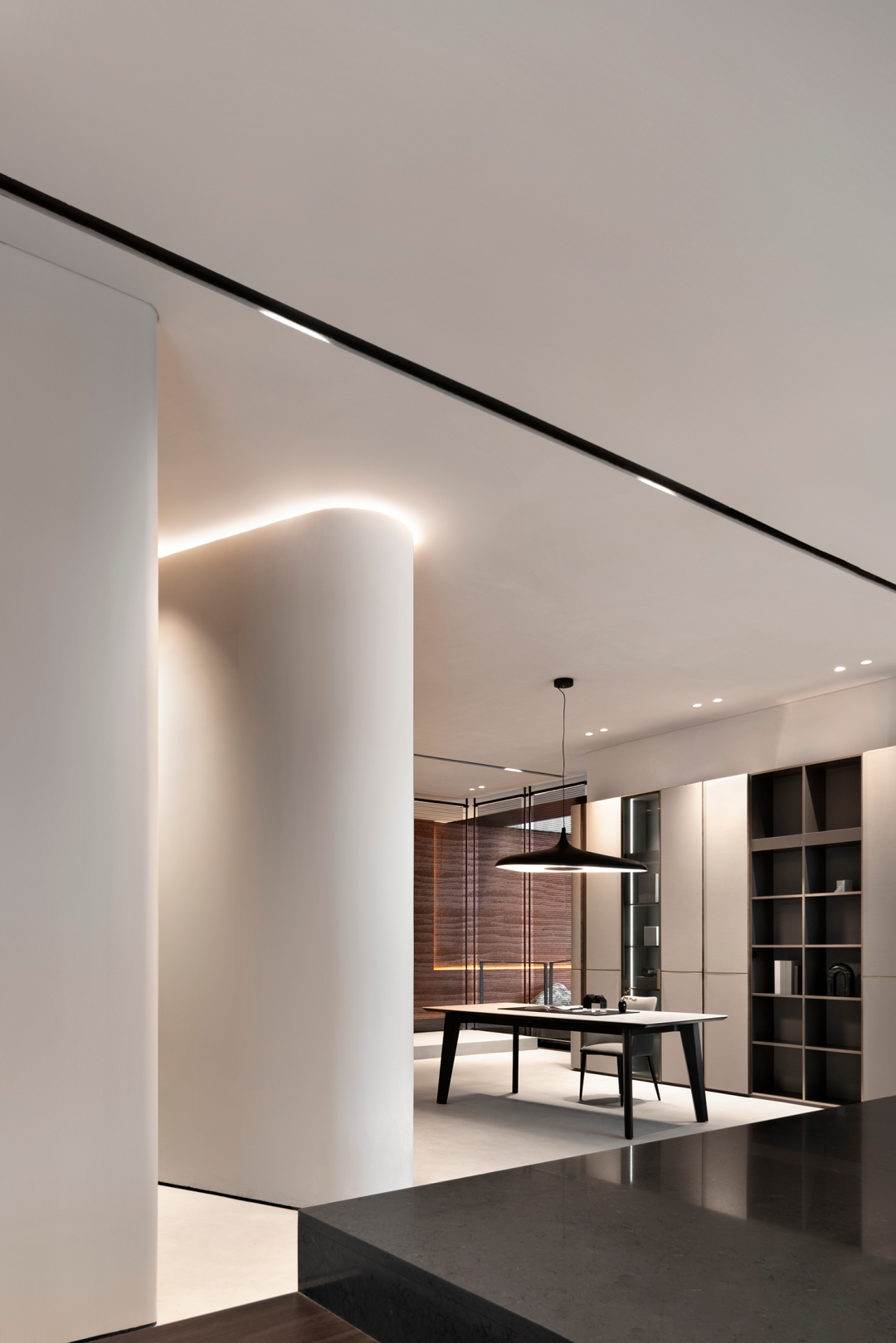 设计师运用理性与艺术相结合的手法,营造极具场域精神的空间感受。第一层次以切入建筑的方式,把自然引入室内,模糊空间中的里外界限。第二层次运用合理的动线,以及动线和局部空间的联动关系,营造移步换景的氛围。第三层次是注重细部设计和工艺,打造舒适宜人的尺度感和质感。