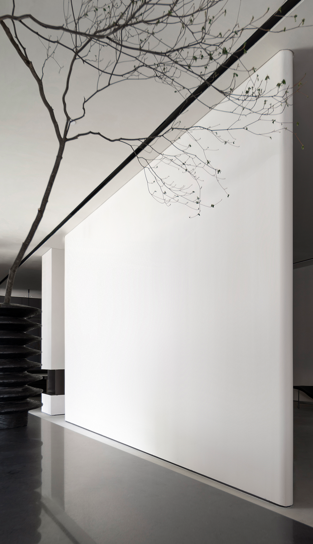 空间与艺术相结合,相互对望。设计师将雕塑的概念运用到空间的设计语言中,艺术作为人与空间的媒介,成为连接彼此灵魂的精神导索。