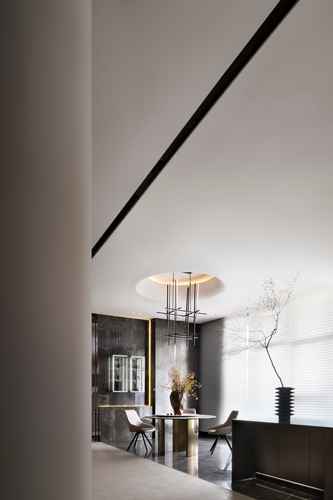 空间借由形体、线条、色彩的形式组合来表现,添一分则累赘,少一分则寡淡,恰到好处地表现出空间的视觉张力。