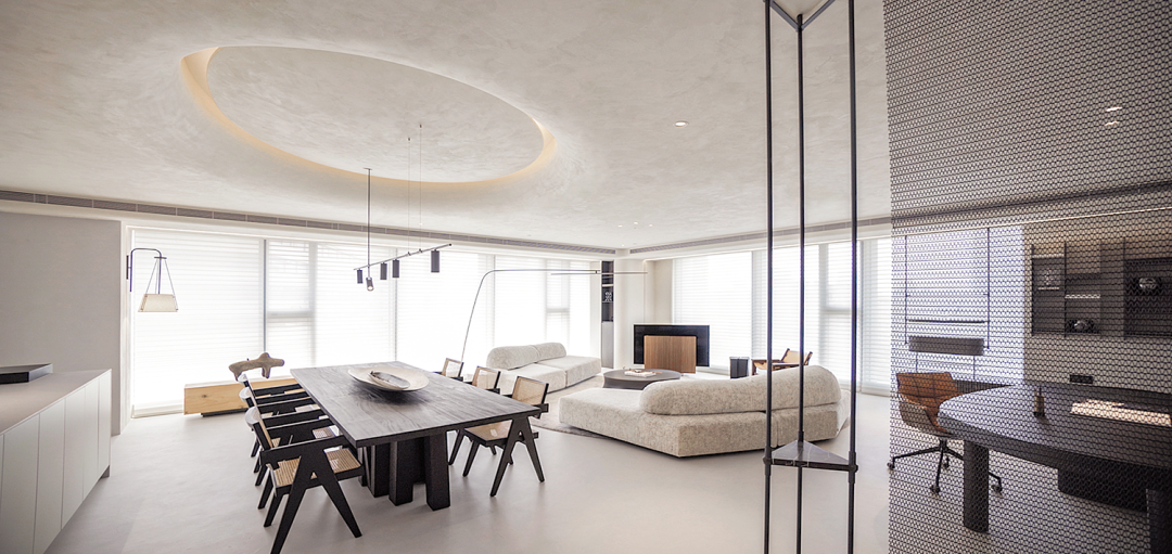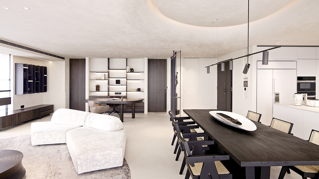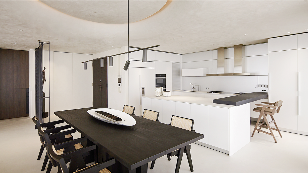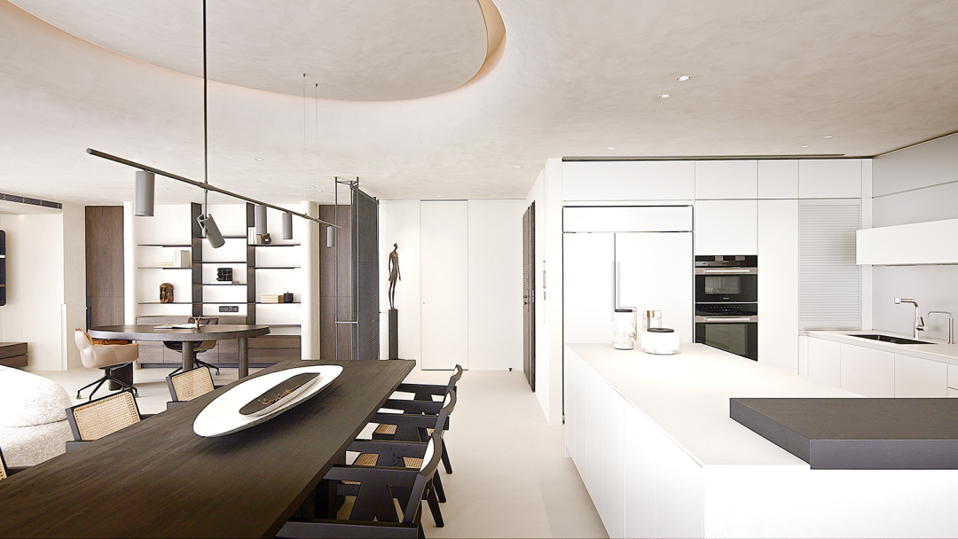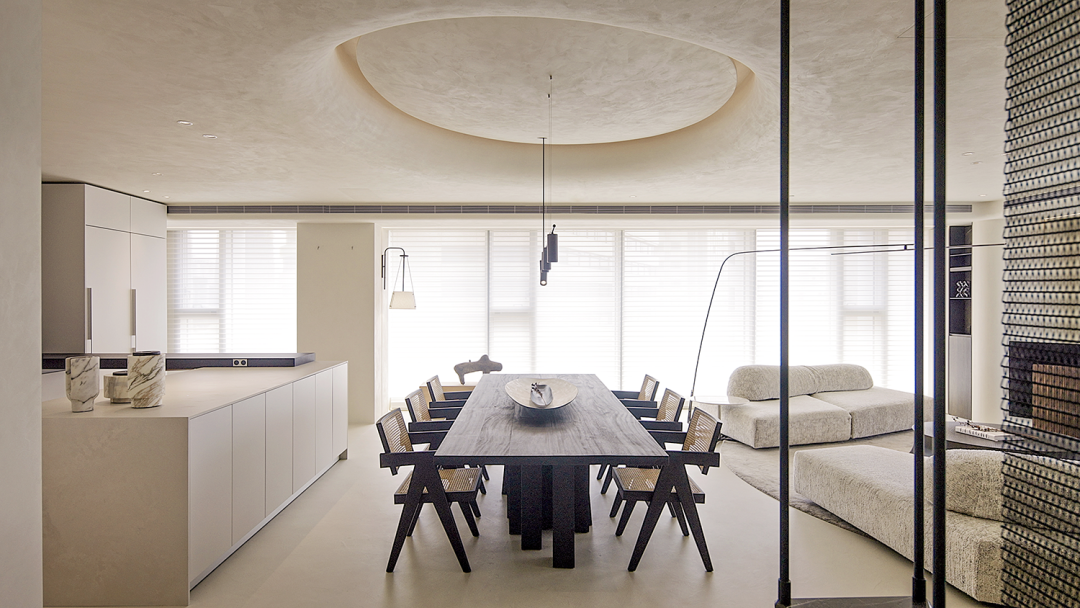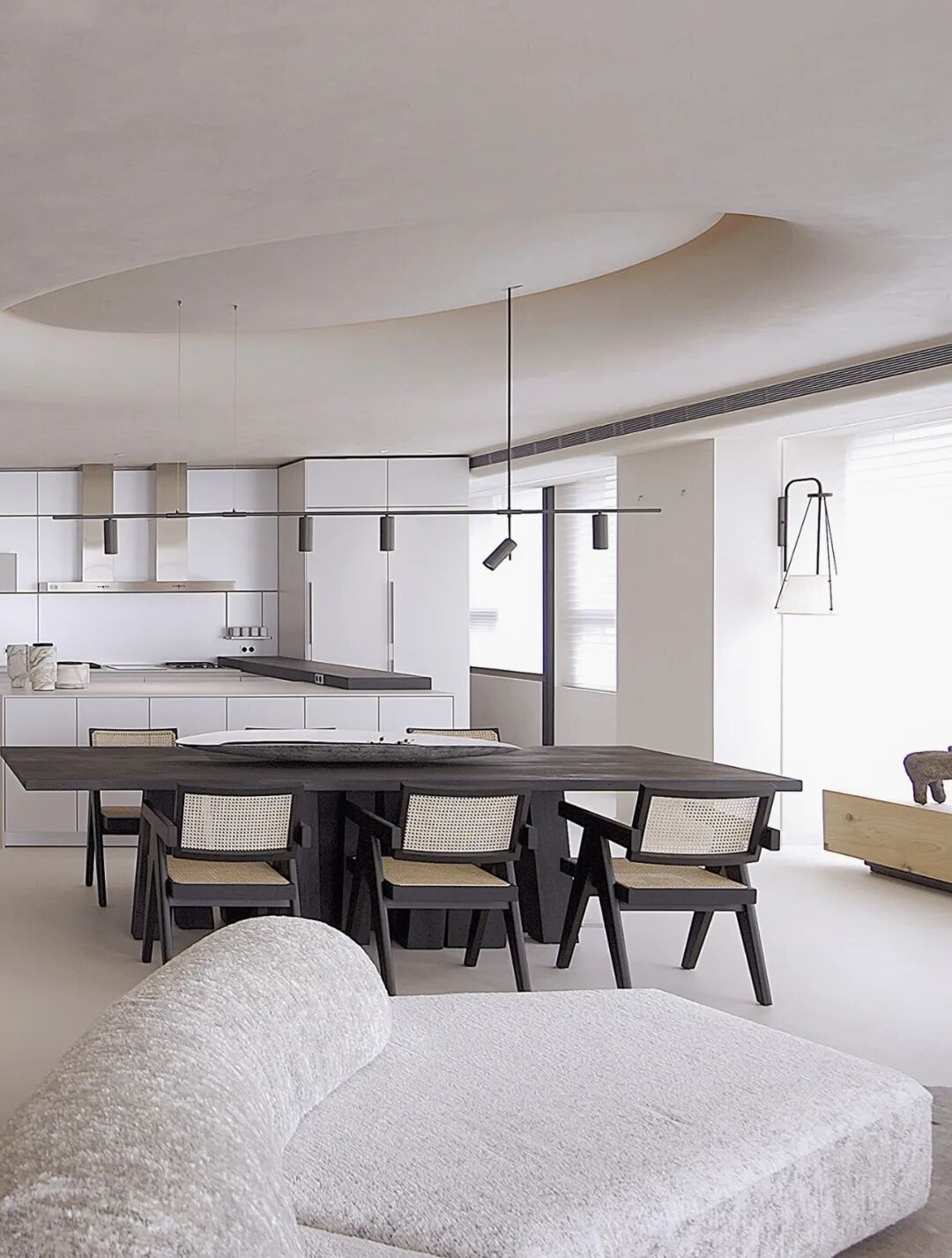 为了达至心灵与物理空间的双重自由,设计师将客厅、餐厅、厨房、阅读区、玄关等多个功能区域连成一体,创造空间与视野的自由与灵动,同时满足不同时间的不同需求。