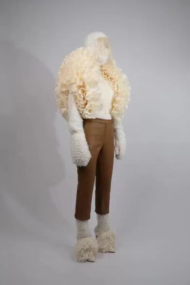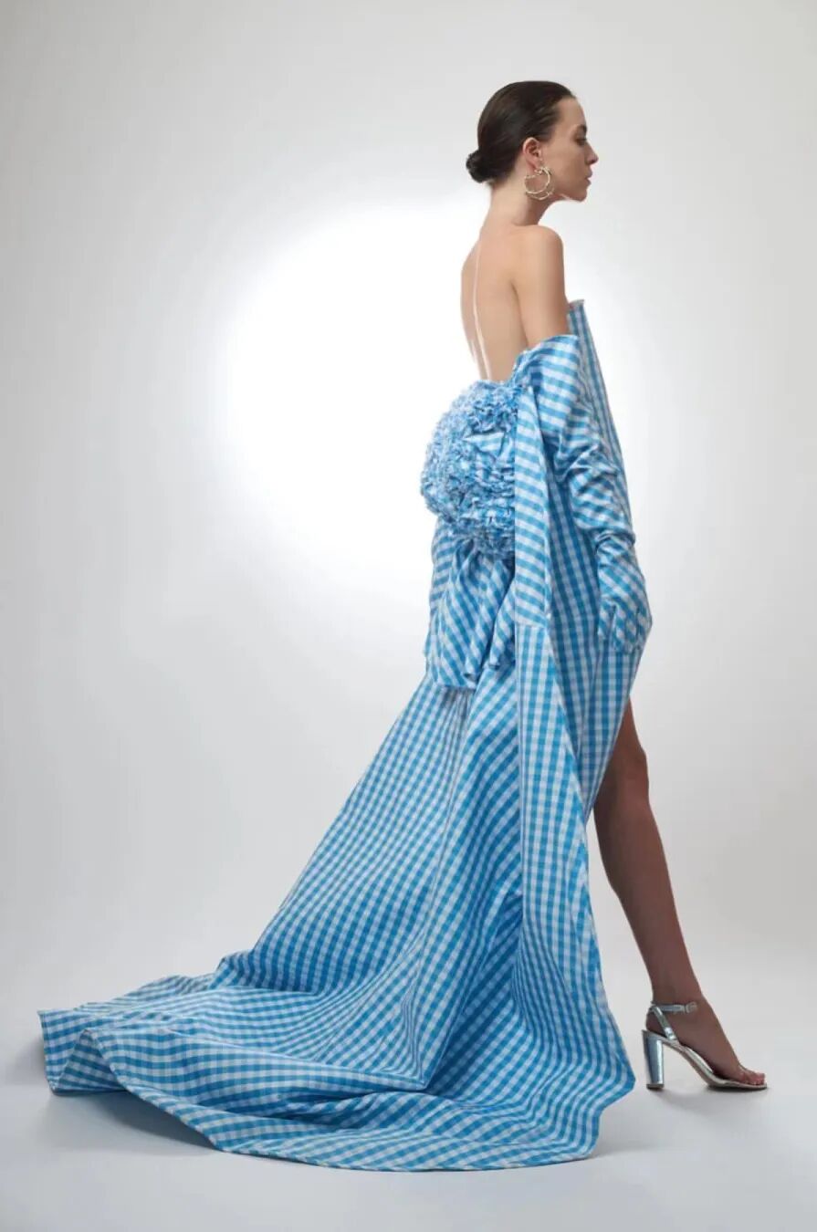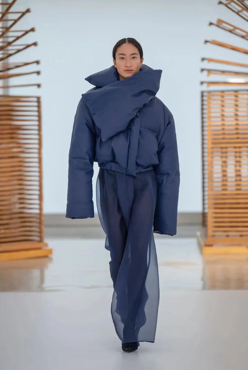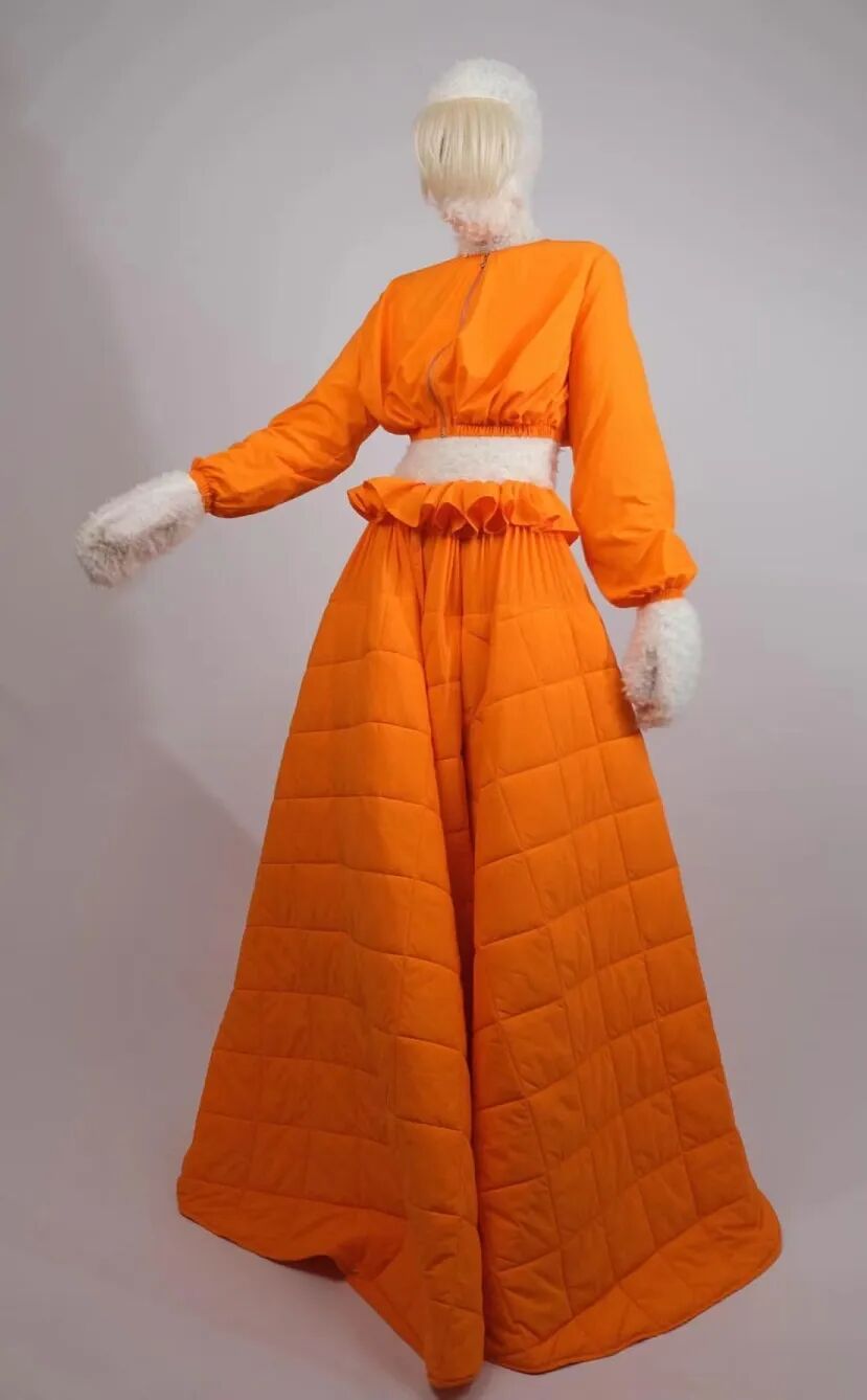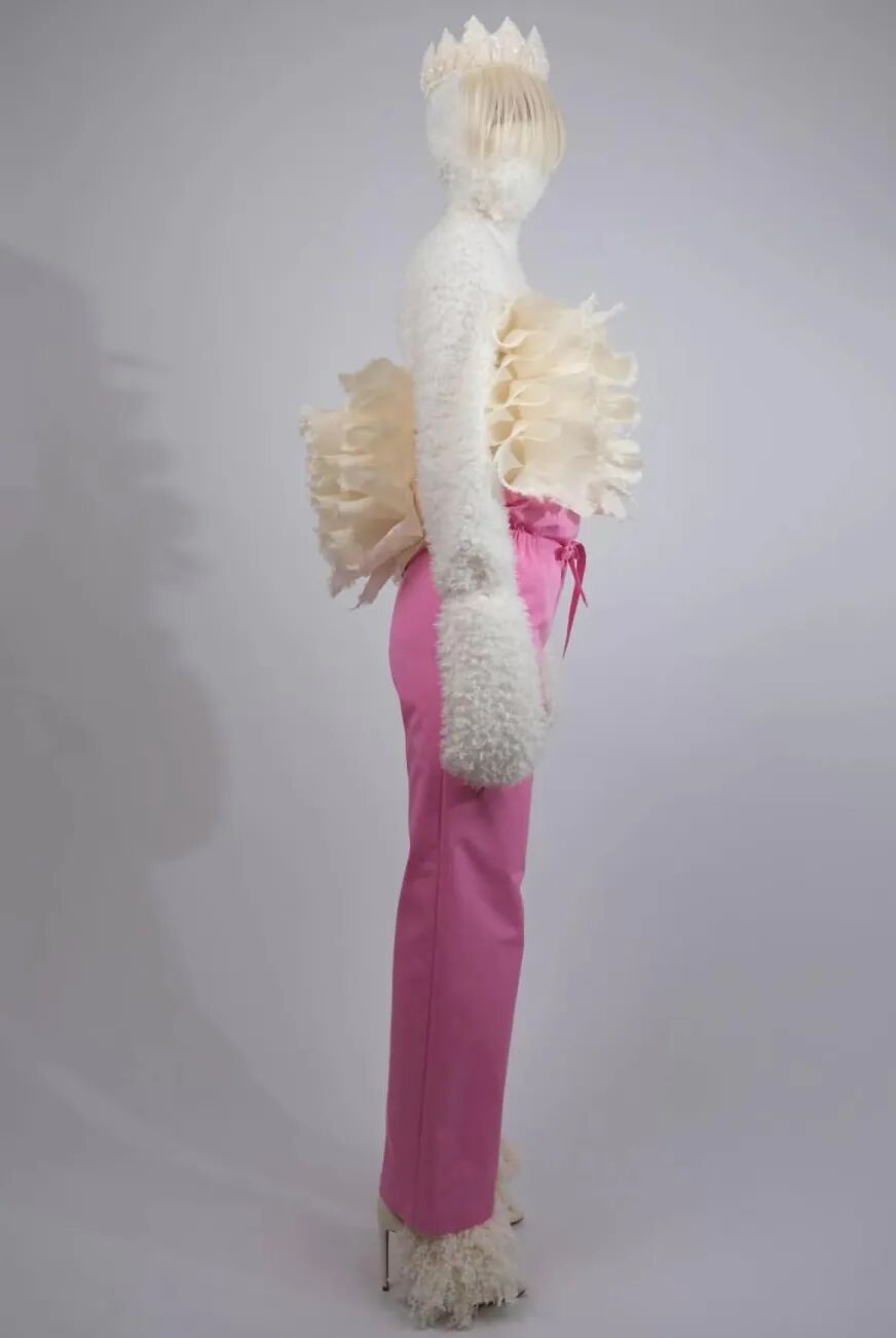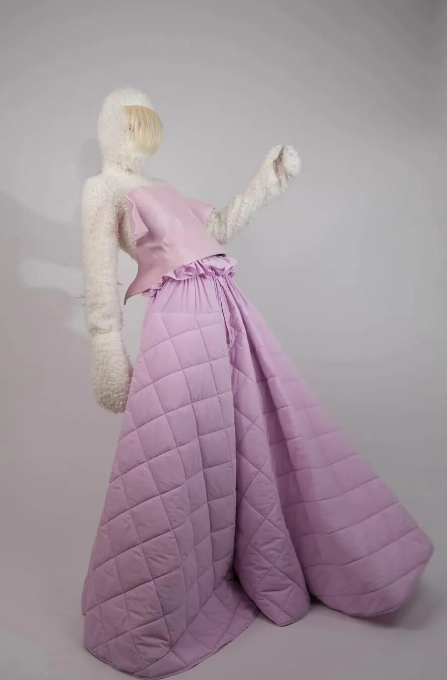 基于太空梦想、月球形状、若虫和泰迪熊等灵感,Amorphose继续对面料进行试验,使用水晶点缀在丝绸上实现转换故事里的星空,或对现有面料进行微妙的操作。