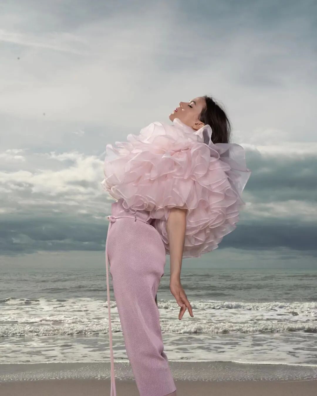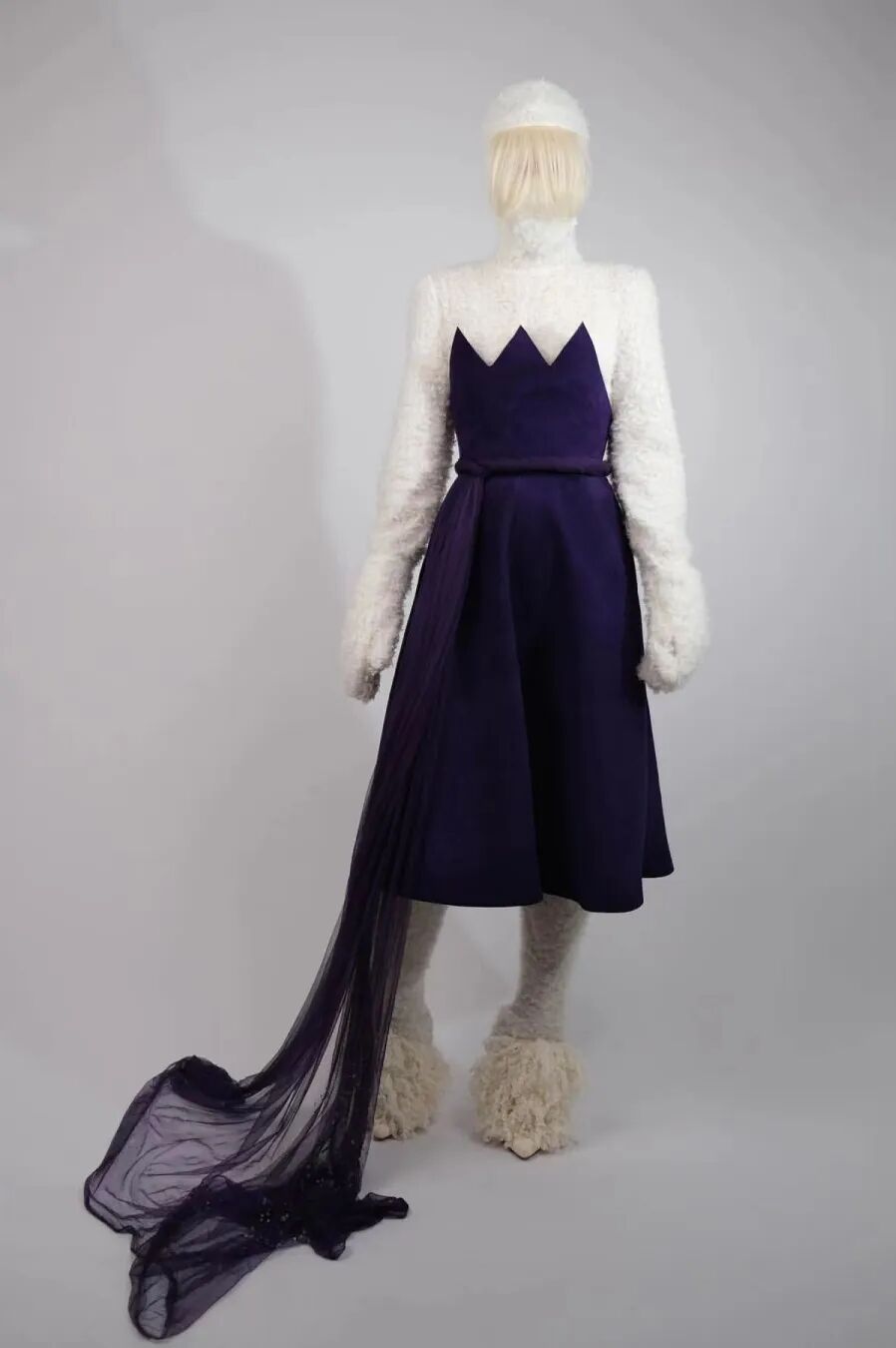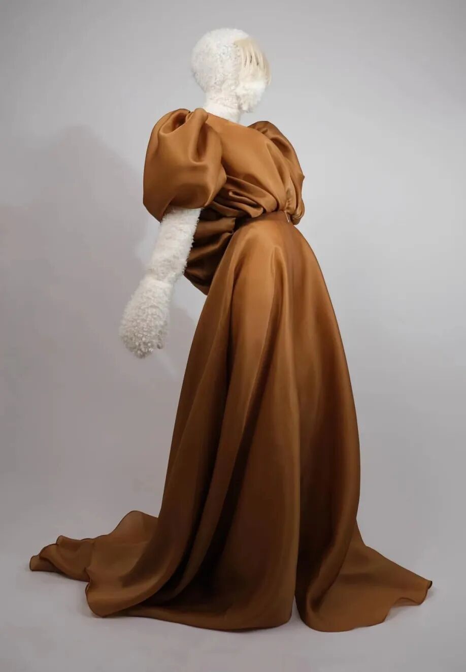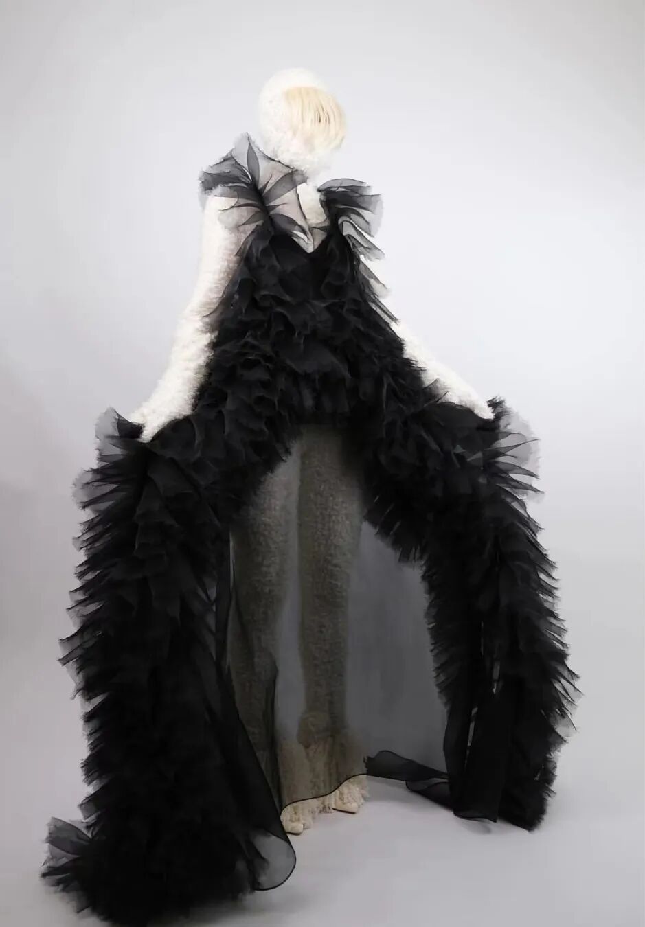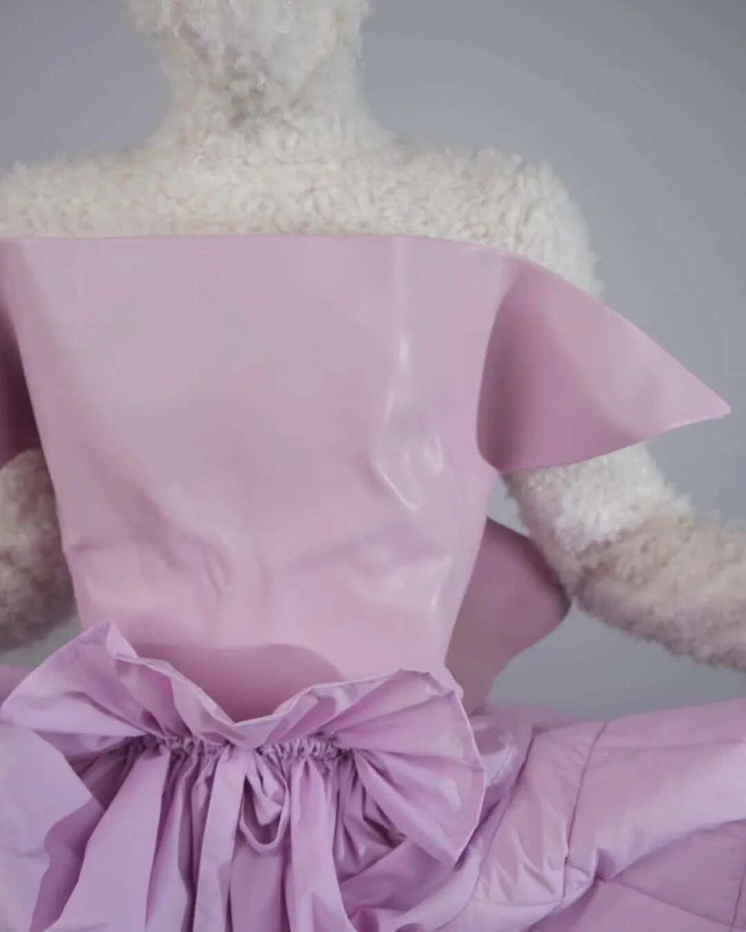 基于太空梦想、月球形状、若虫和泰迪熊等灵感,Amorphose继续对面料进行试验,使用水晶点缀在丝绸上实现转换故事里的星空,或对现有面料进行微妙的操作。
