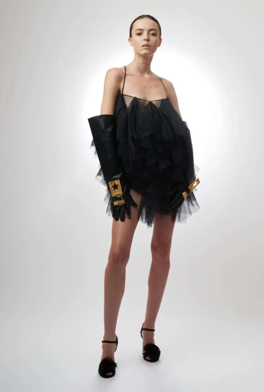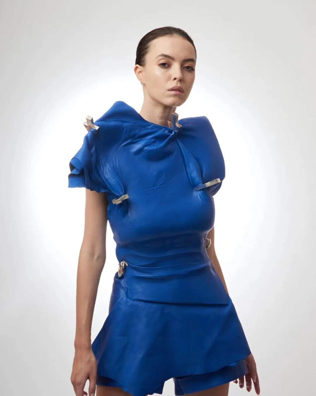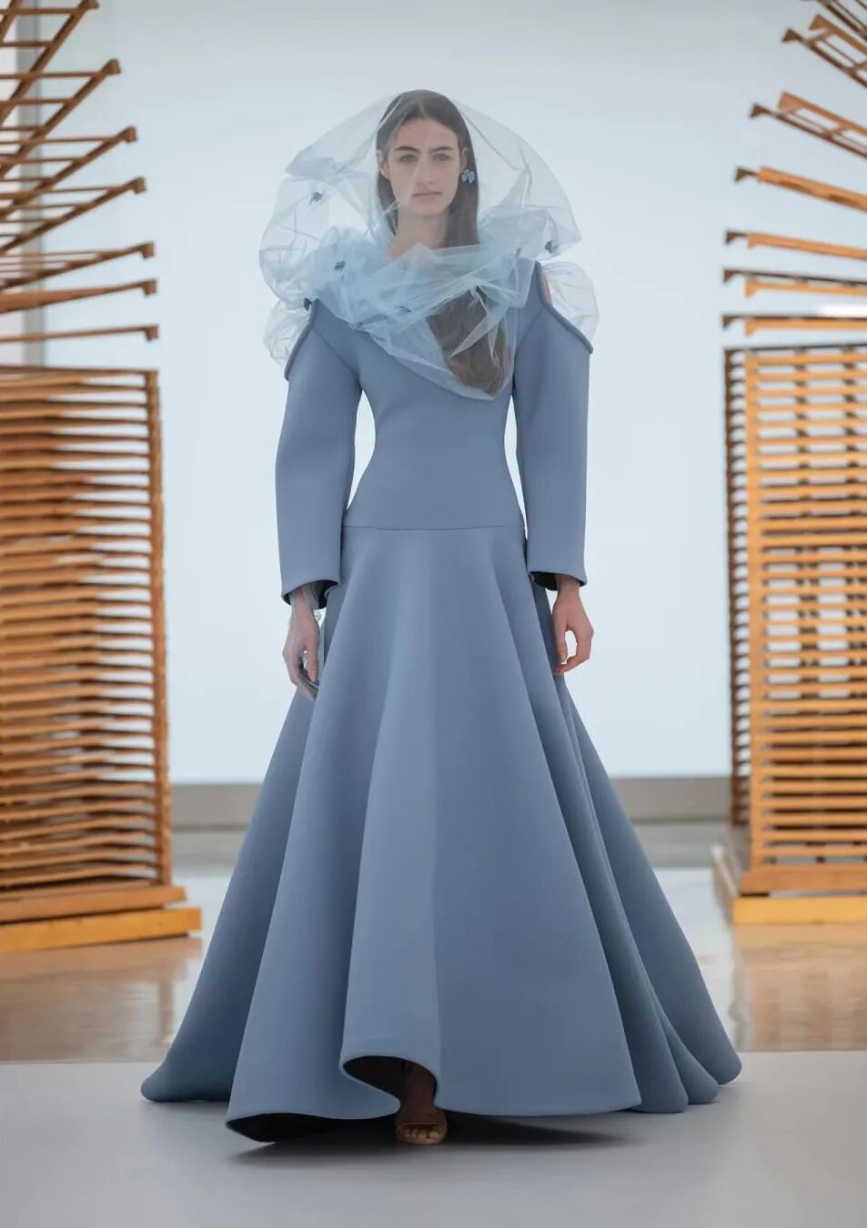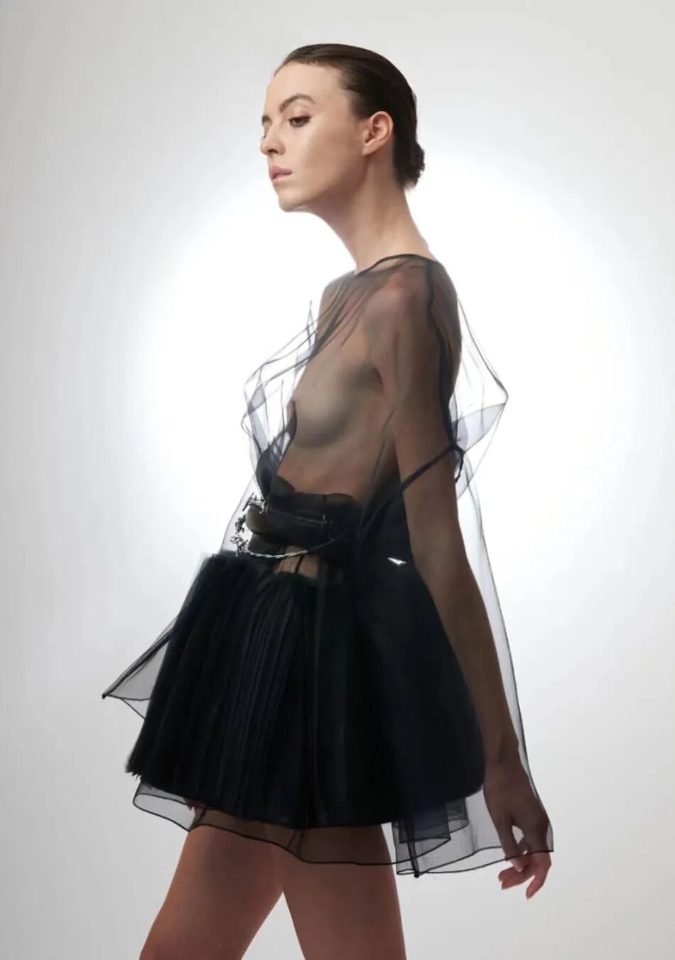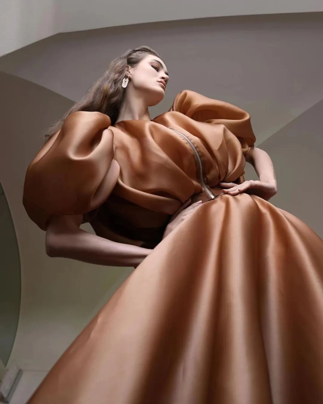 基于太空梦想、月球形状、若虫和泰迪熊等灵感,Amorphose继续对面料进行试验,使用水晶点缀在丝绸上实现转换故事里的星空,或对现有面料进行微妙的操作。