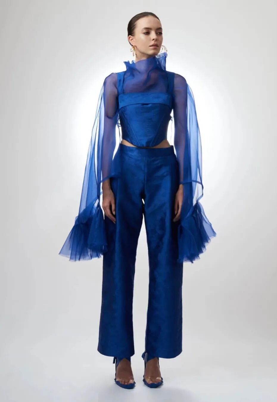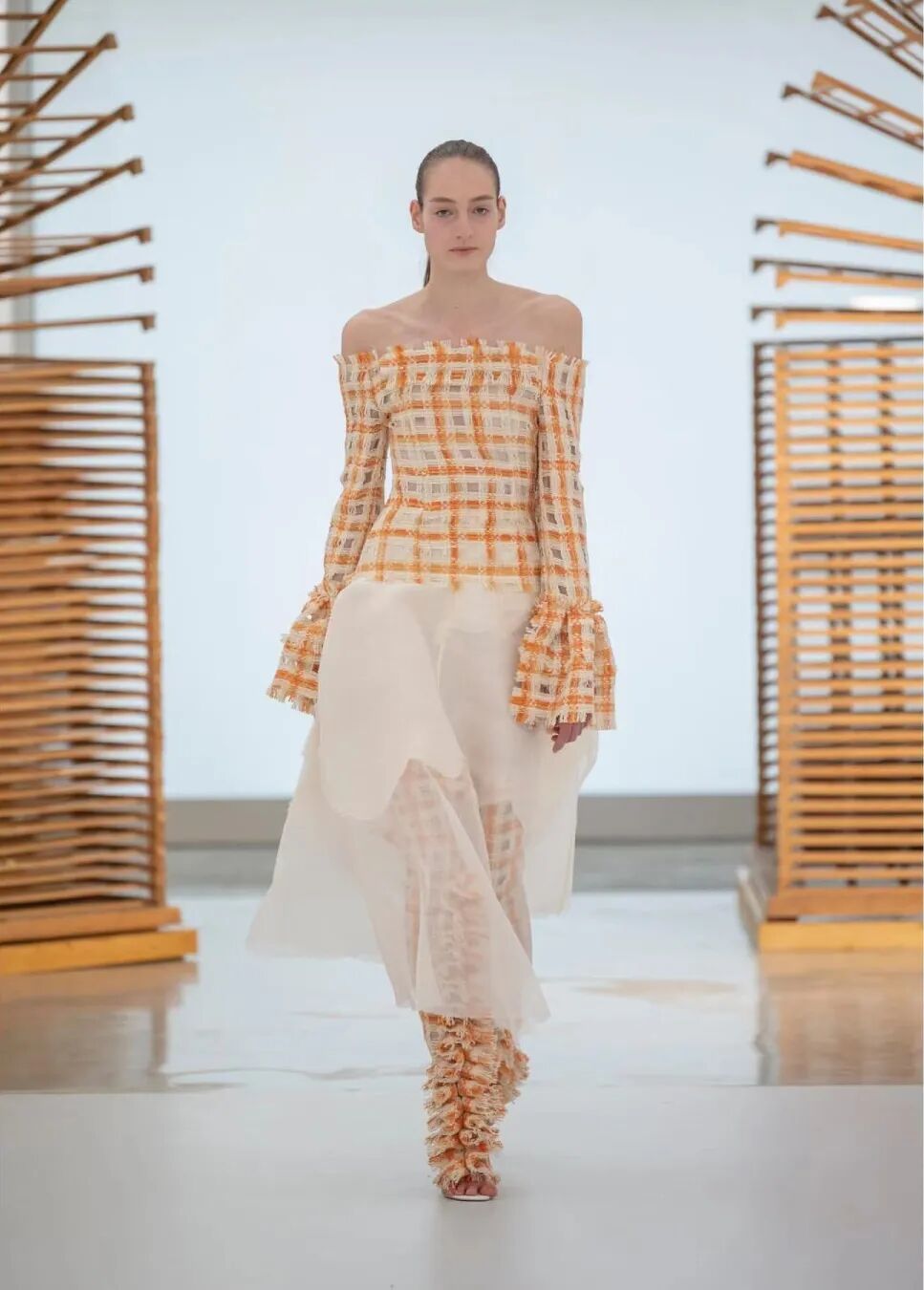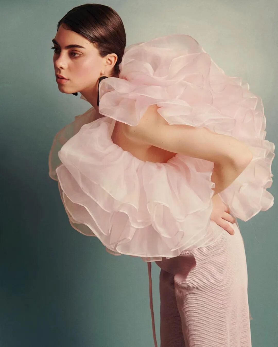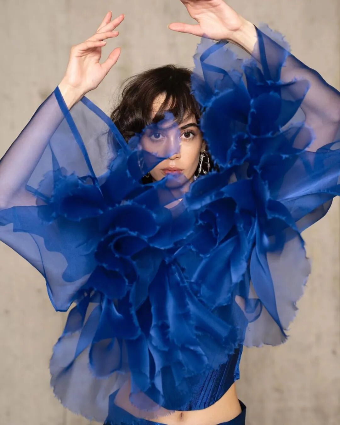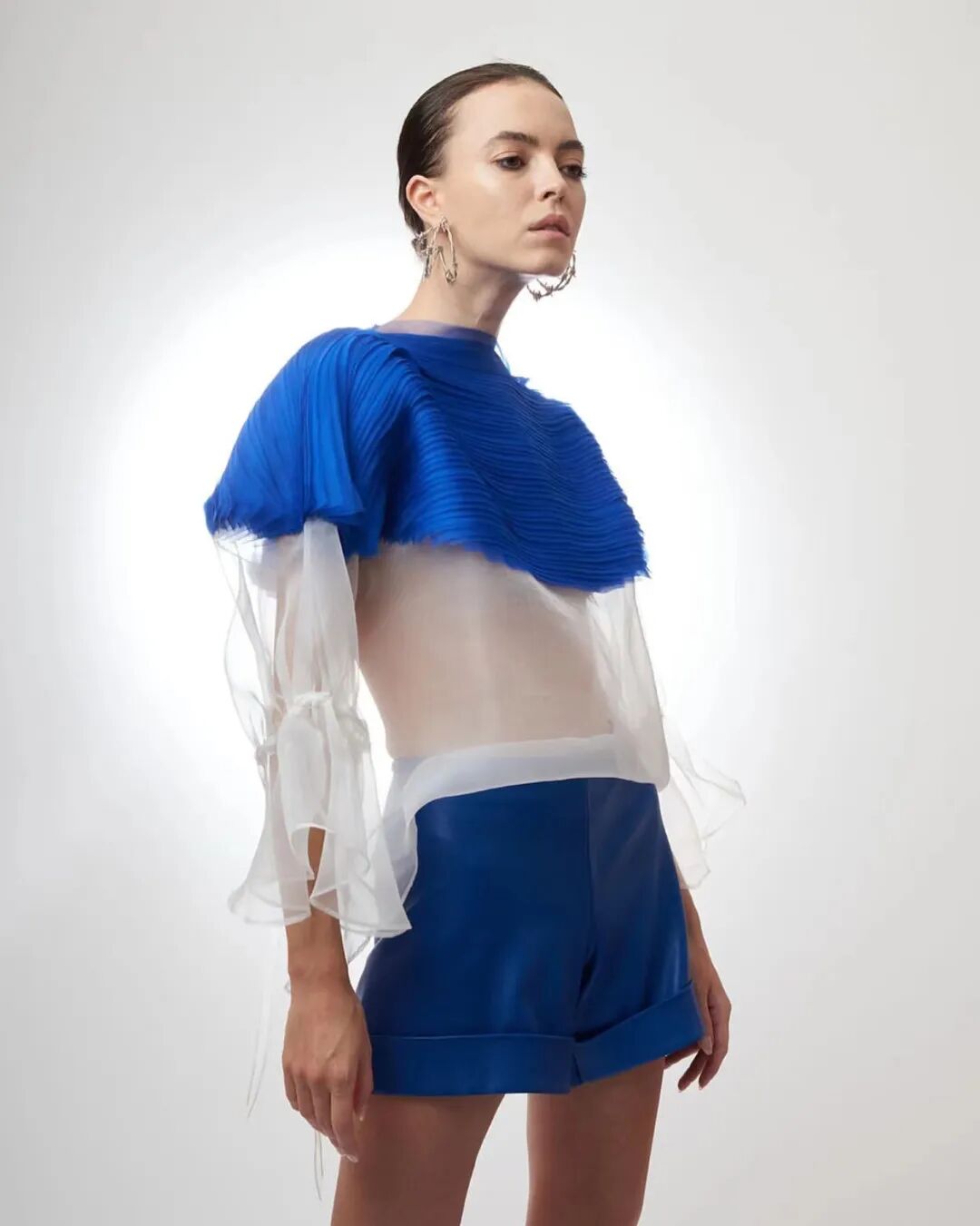 基于太空梦想、月球形状、若虫和泰迪熊等灵感,Amorphose继续对面料进行试验,使用水晶点缀在丝绸上实现转换故事里的星空,或对现有面料进行微妙的操作。