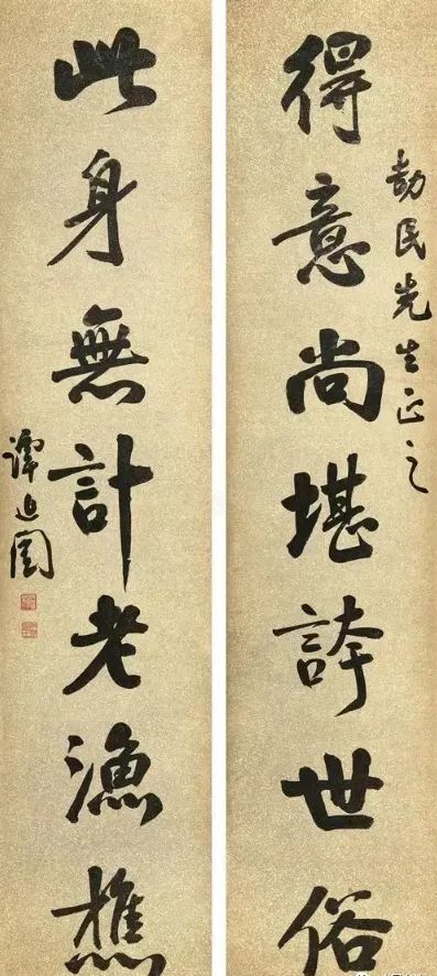 于右任先生每论时人书法时必曰:“谭祖安是有真本领的。”马宗霍评其书云:“祖安早岁仿刘石庵,中年专意钱南园、翁松禅两家,晚参米南宫,骨力雄厚,可谓健笔。”他的行书是将刘石庵与钱南园相互熔于一炉。其点画之丰满圆润、挥洒从容乃似石庵,而浑健苍劲,体势阔疏朗,气势夺人处又似南园。谭延闿是进士出身,入翰林院,有很高的学养。能巧妙地从前人书中吸收营养,从而形成了自己宽博温厚、含蕴性灵、雄健开阔的韵致。此谓百学不能至也。