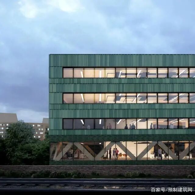 该木建筑将配备太阳能电池板和水源热交换系统,旨在成为“气候适应型办公设计”的一个建筑范例。