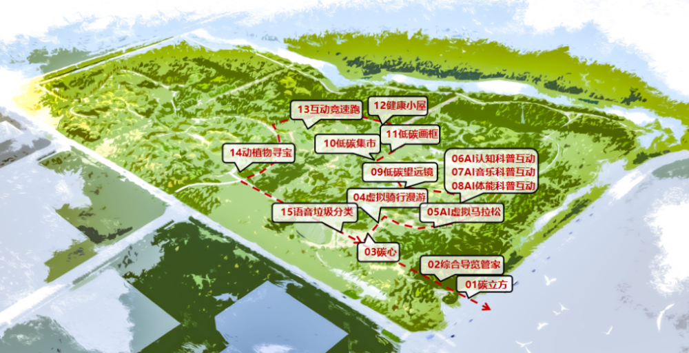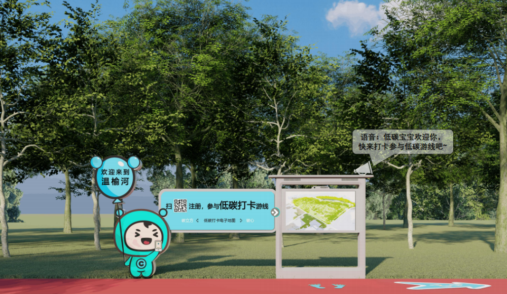 温榆河公园昌平一期工程项目是全市首个碳中和主题公园,结合减碳行为体系(主要指绿色出行、绿色生活、低碳科普等),通过主路旁边设置的不同互动装置和虚拟骑行车、虚拟马拉松跑道等,将智慧科技和减碳行为科普充分地融为一体,量身打造碳积分转换系统。