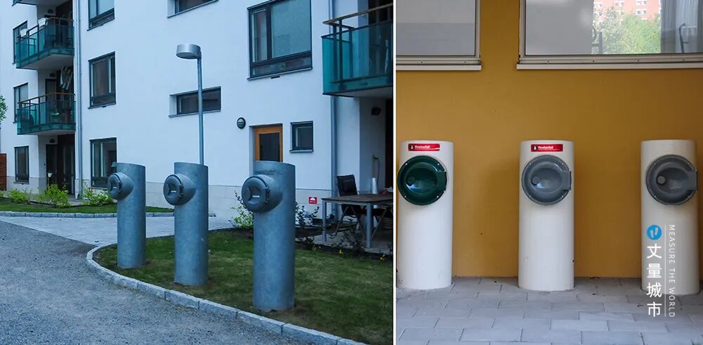 ▼ 哈马碧湖城的移动真空收集系统,将分类垃圾高效汇集到垃圾处理站