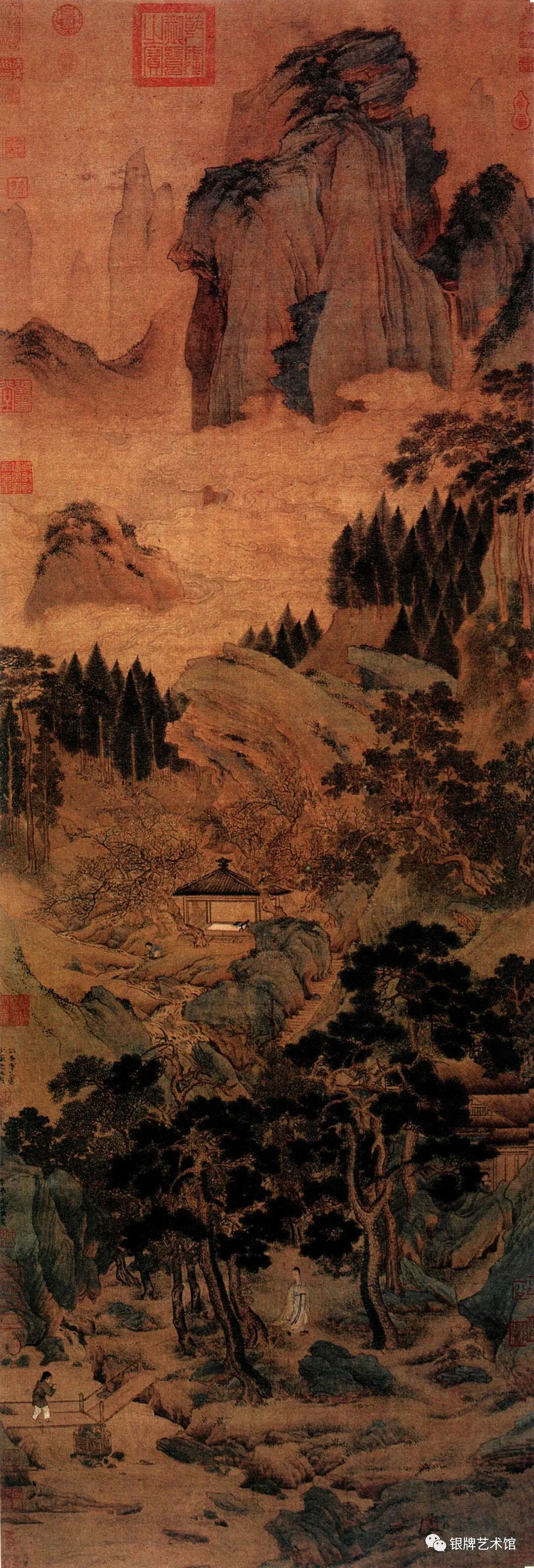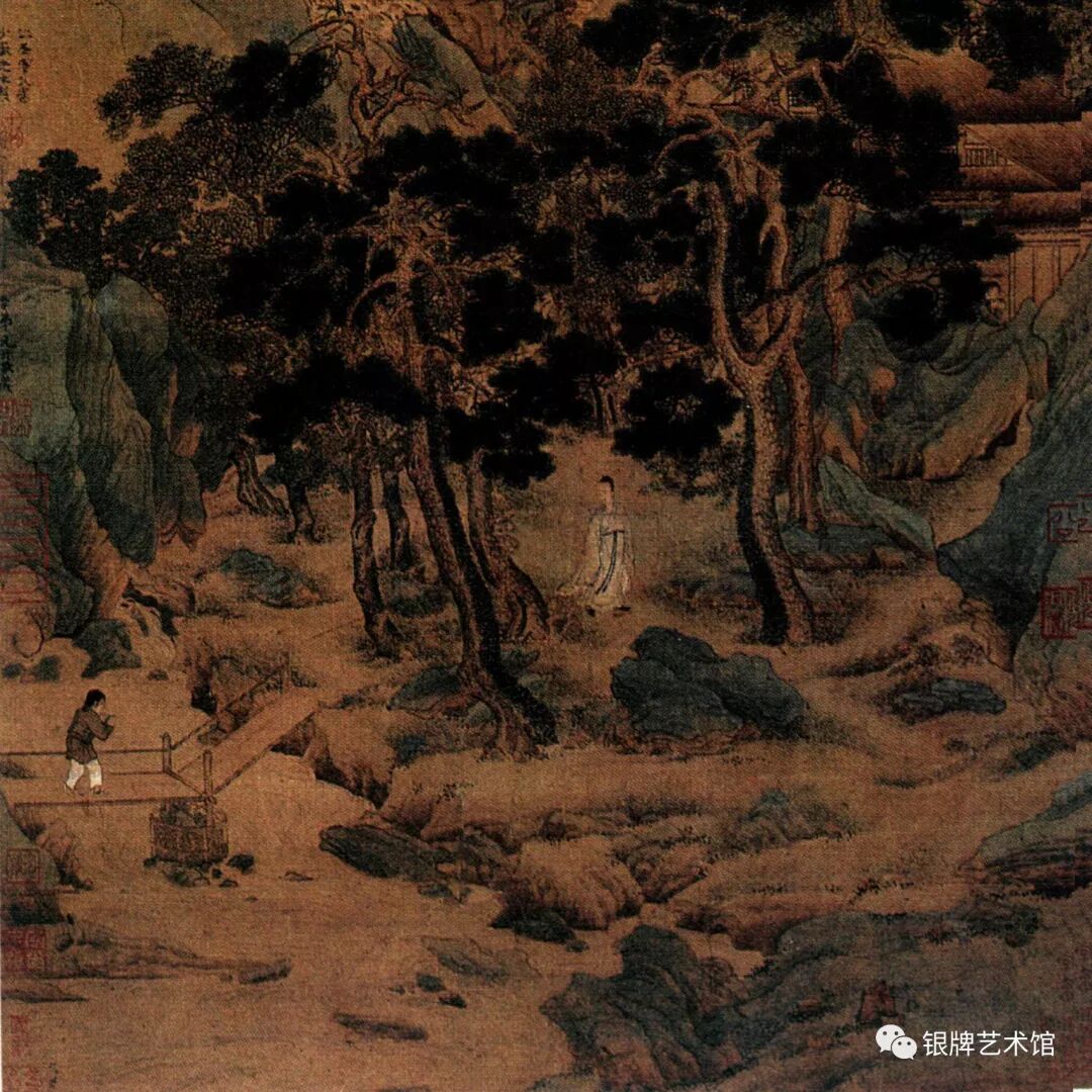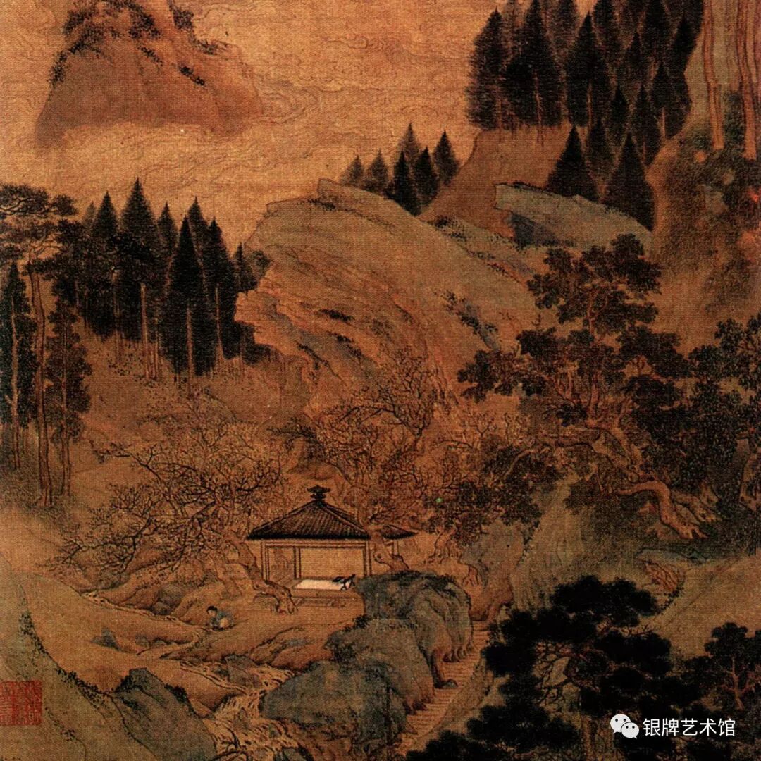 这幅画是把滴翠的石绿、秀雅的淡赭、温润的墨色,自然和谐地统一在一起,具有一种不媚不俗的艺术效果。了解更多精彩,欢迎关注银牌艺术馆小程序以及微信公众号。