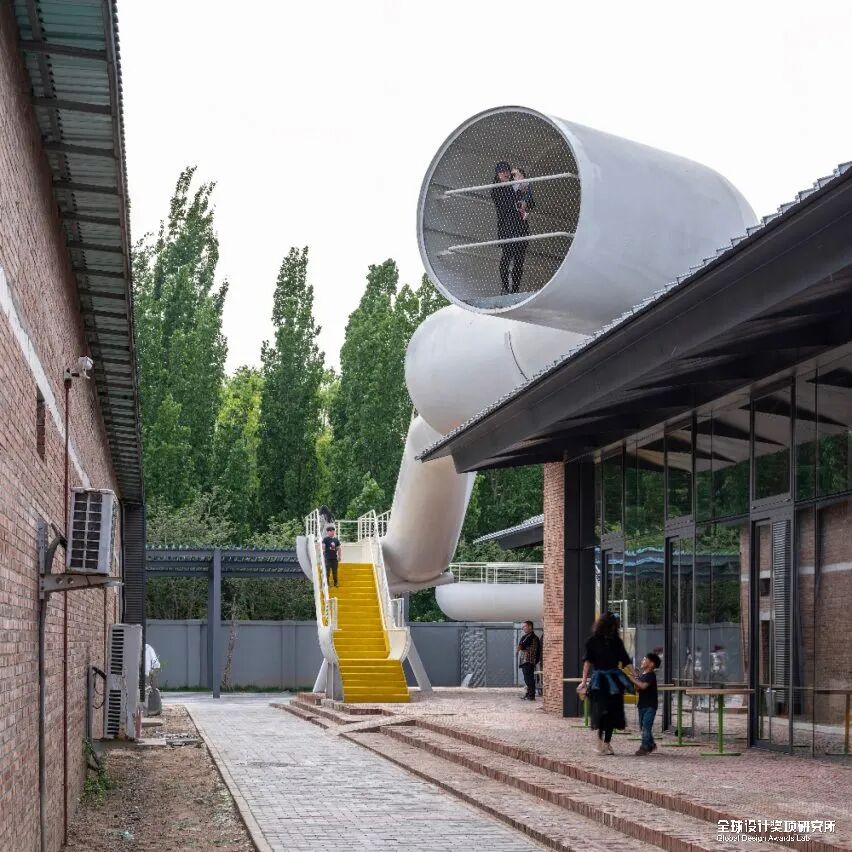 项目介绍:本项目是对北京北部一个现有工业园区的翻新工程。原建筑为20世纪70年代用于储存粮食的仓库综合体,现已被改造成儿童游乐场。该空间由一系列山丘、蹦床和管道组成,屋顶平台通过管道通往原仓库,为各个年龄段的孩子创造交错连接的游乐空间。评审们表示:“借助起伏的地形,结合管道和滑梯,可以让孩子无拘无束地玩耍。”