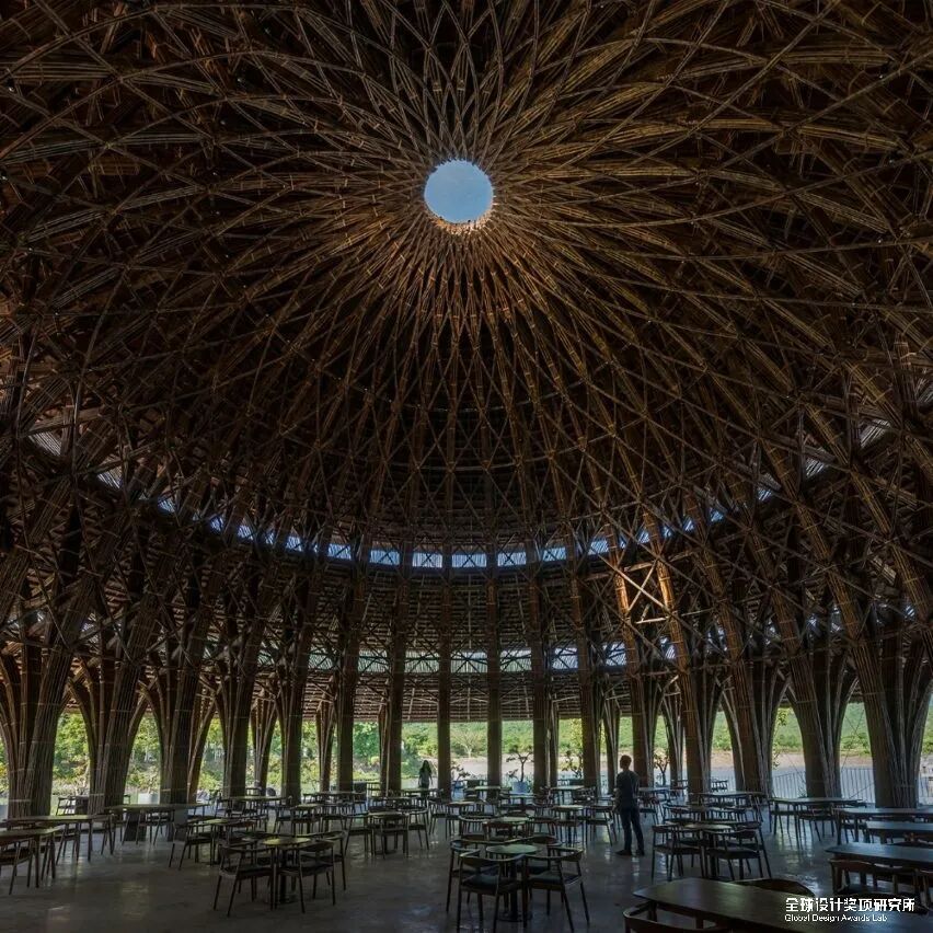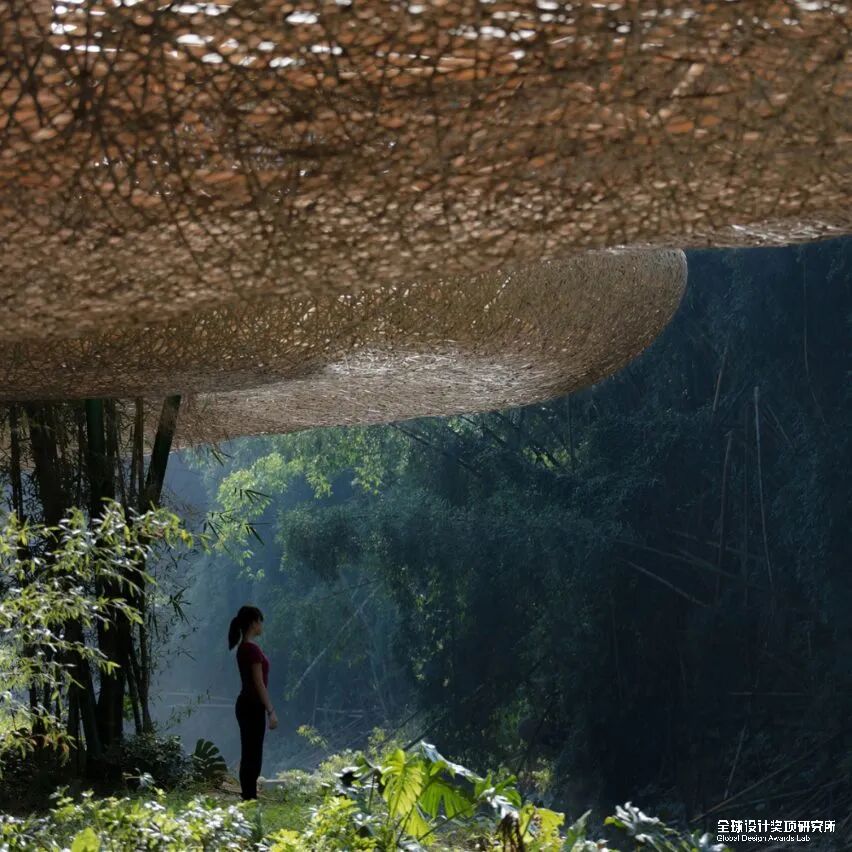 项目介绍:竹林亭台楼阁位于中国阳朔漓江印象刘三姐灯光秀的演出园区,用竹条手工编织而成。竹叶捆扎竹条自然形成的竹制结构,外形如竹艺长廊覆盖住大部分场地。内侧编织层有一层透明聚乙烯薄膜,避免降雨带来的侵扰。评审们评价道:“这个项目面对如此宏伟的景观地貌,非常巧妙且具有创意地使用了竹子作为材料,用协调而非对抗的方式将建筑结构与自然环境衔接了起来。”