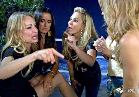 这张图片什么意思?一个女人对着猫猫指指点点,猫猫一副无辜?其实两幅图片根本没有关系,先说左边的图片,它来自美国真人秀《比弗利娇妻》的其中一个画面。