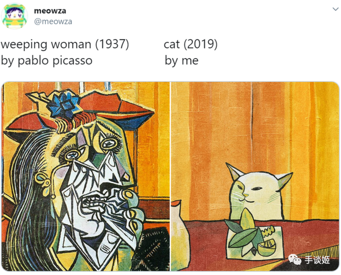 其实在互联网上,猫咪就很容易成为梗传播,而把两张图重合后,则又产生了极大的适用性,在很多场合都能起到不错的效果,这则推特被大量转发和点赞,并被使用到各种场景中。