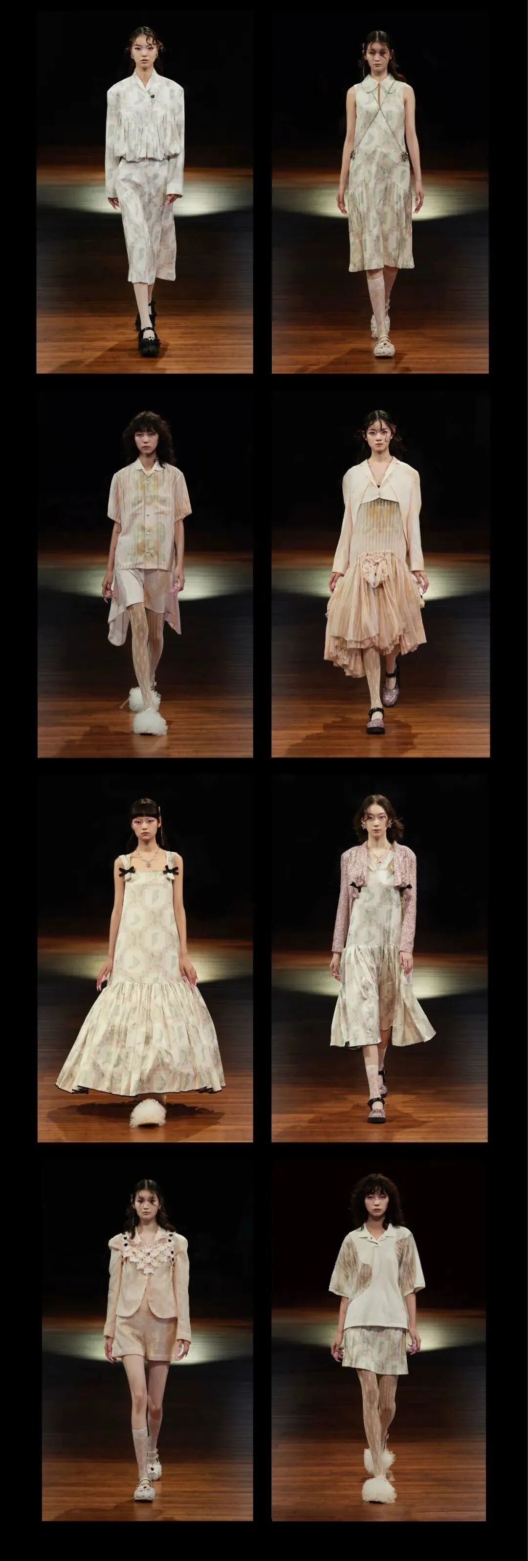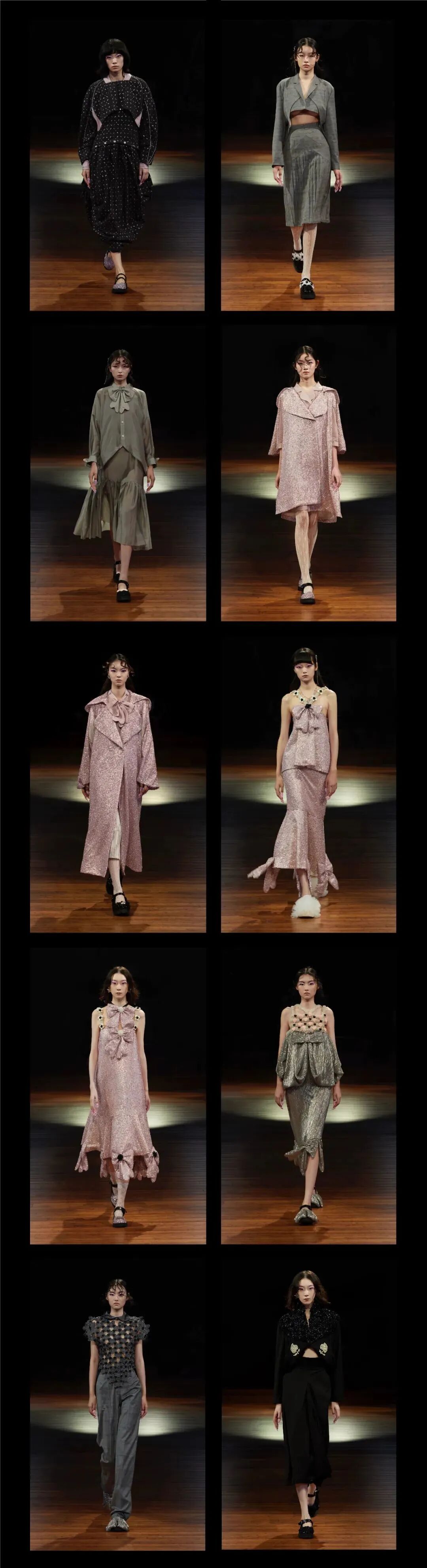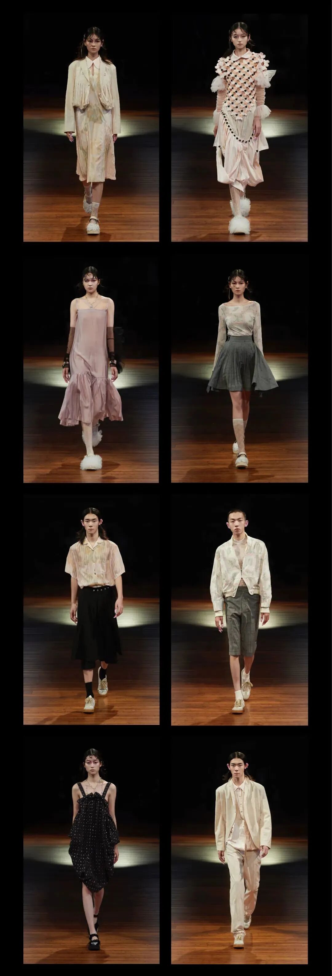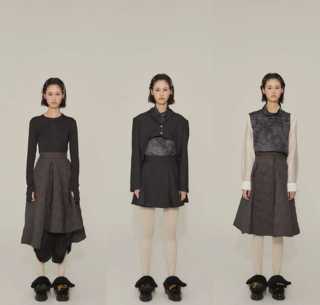 傅凡丁则在日本受到功能性服装文化影响,专注于结构设计,捕捉功能性结构与时装剪裁的结合。两人将精致面料和实用主义相结合,展现装饰性和可穿着性的平衡。