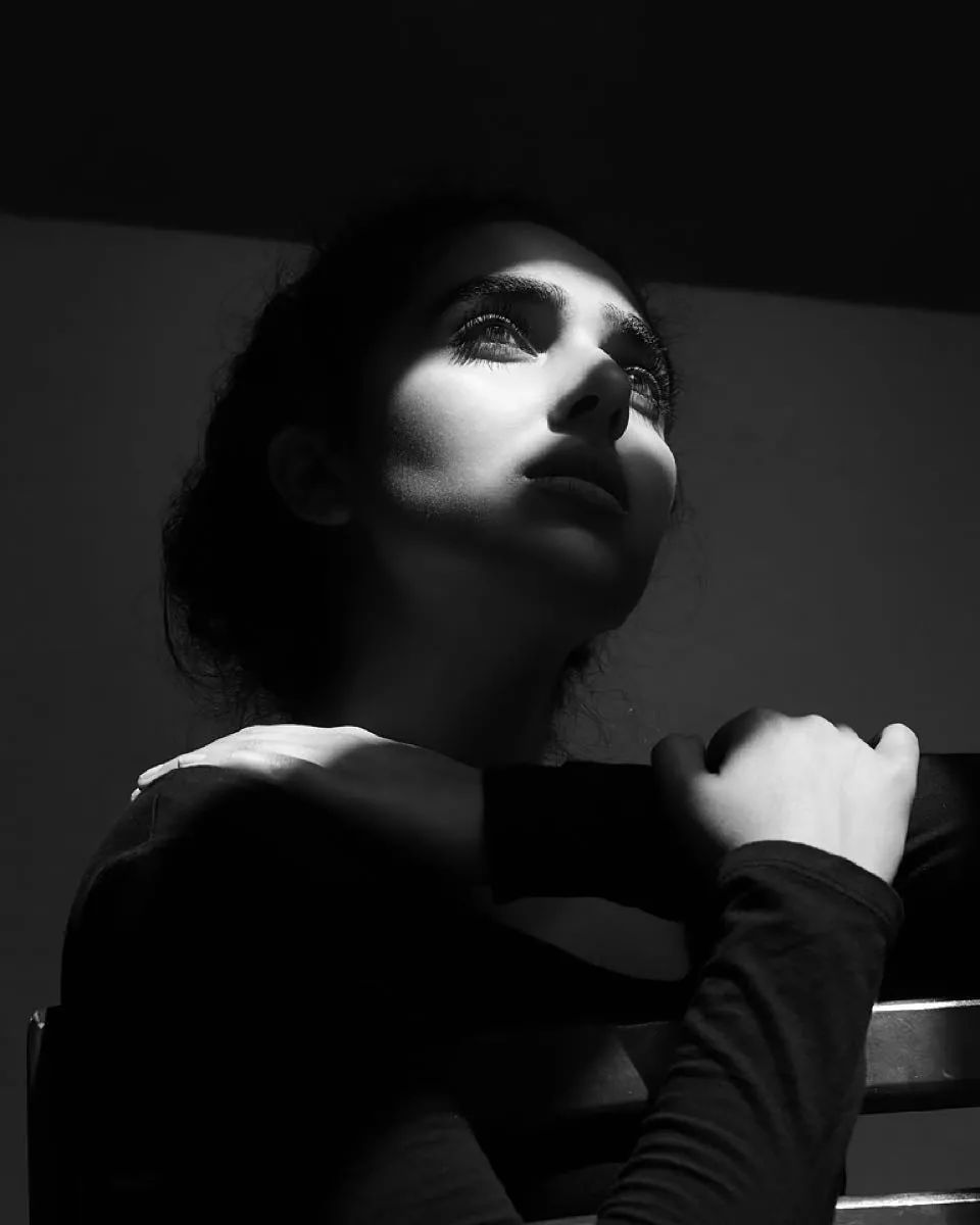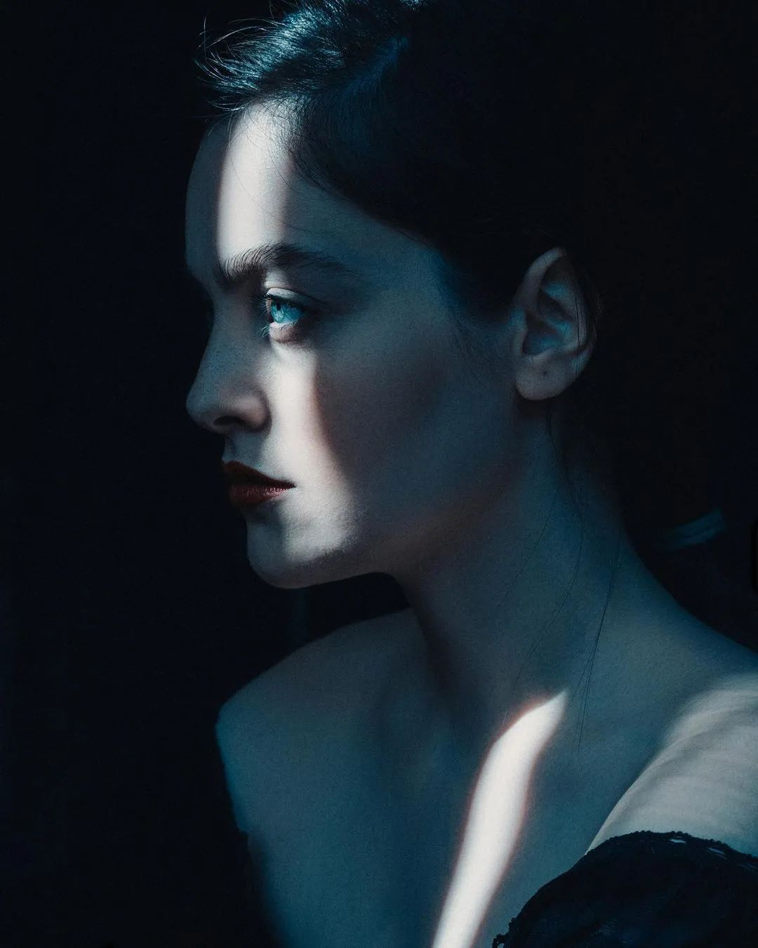 摄影是光影的艺术,Babak Fatholahi让光参与到了造型与氛围制造之中,无声打落在模特的脸庞与身体之上,似乎连光都对美人格外偏爱,成为了整幅作品里最为神妙的一笔。
