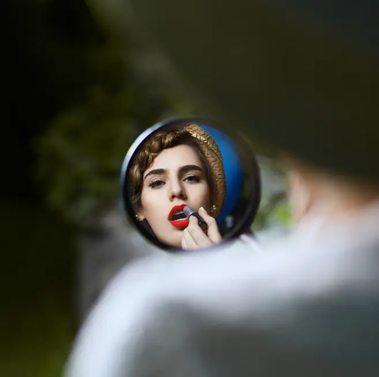 深邃的眼眸、微启的红唇、迷人的轮廓……