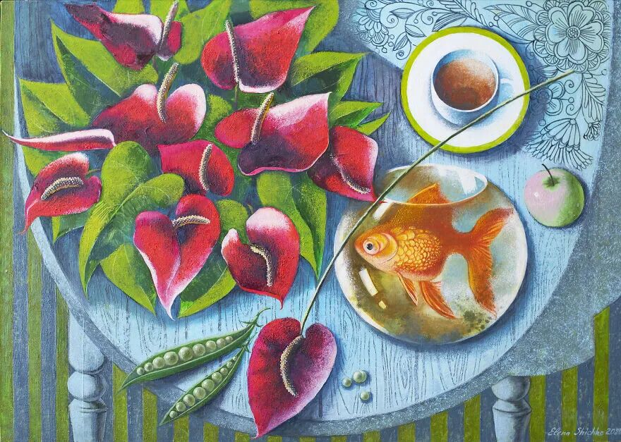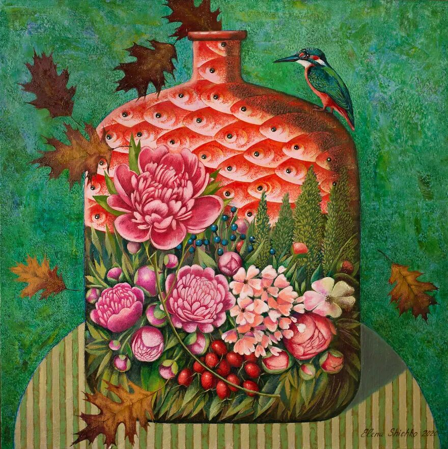 接下来,我们就一起进入艺术家埃琳娜·希奇科的幻想世界,看一看静物还能以怎样的方式展现在我们的面前吧。